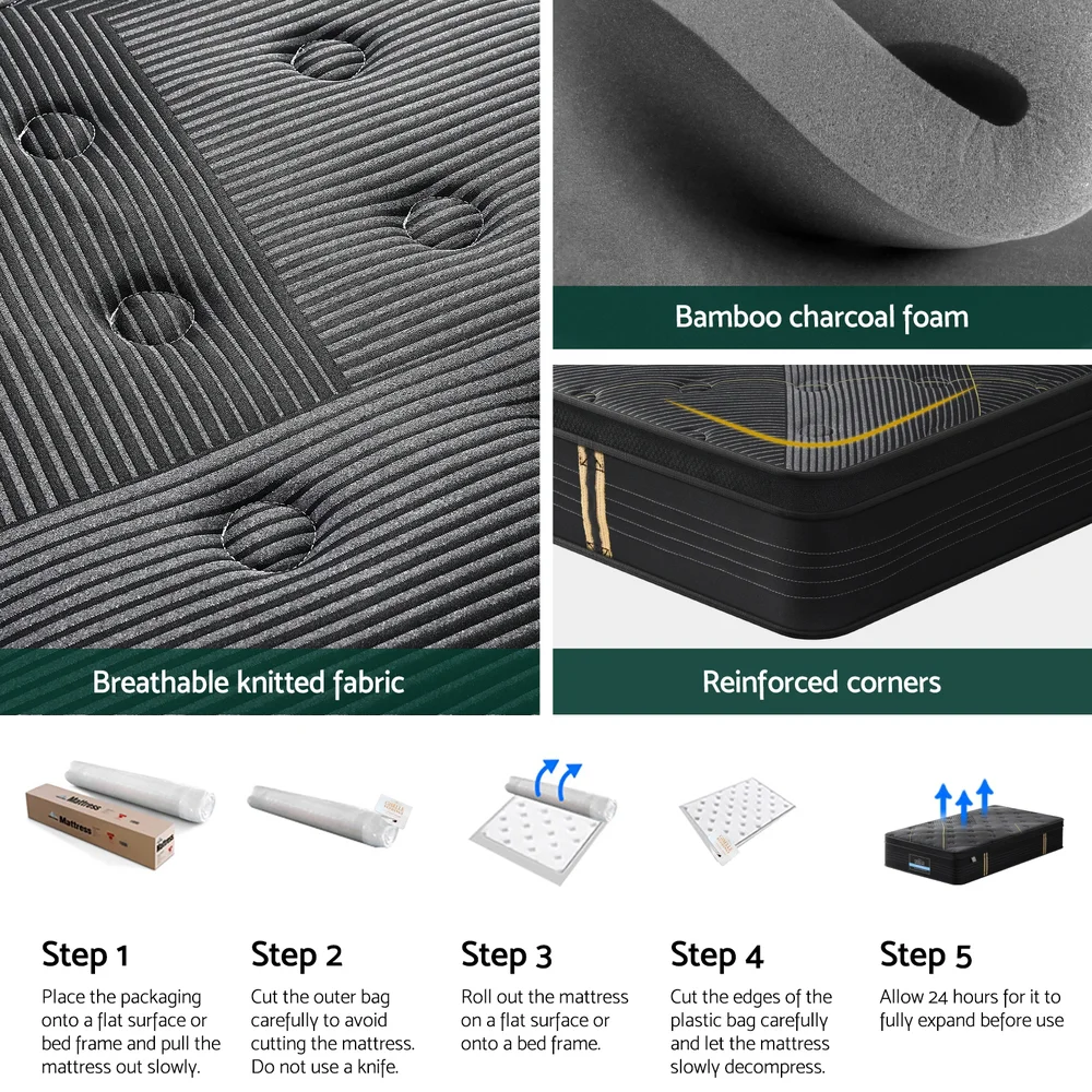Giselle Bedding Midnight Series King Single Mattress 35cm - Bamboo Charcoal Foam, Pocket Springs, Medium-Firm Support