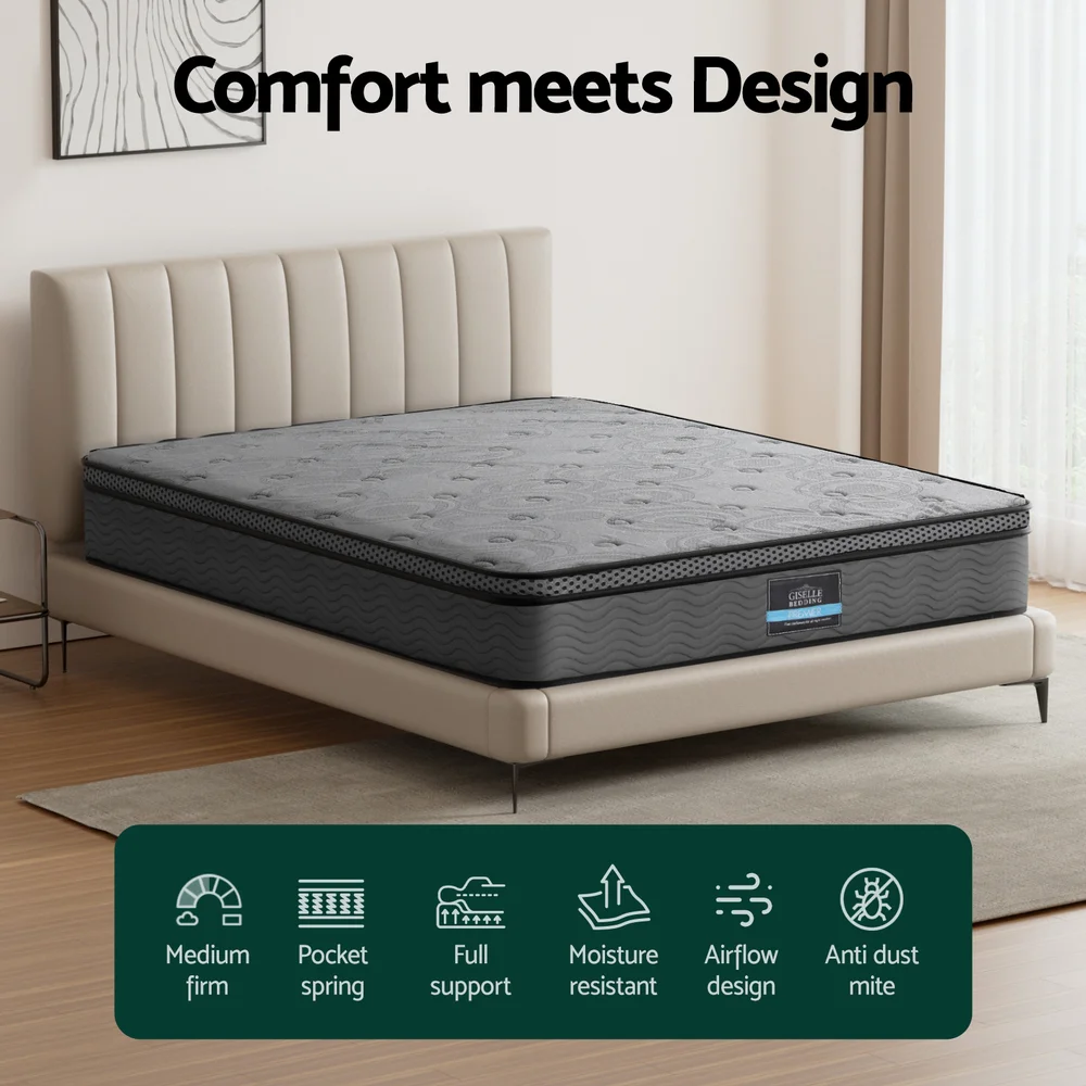Giselle Bedding Verve Series 30cm Queen Mattress - Medium Firm Euro Top with Pocket Spring & Breathable Fabric