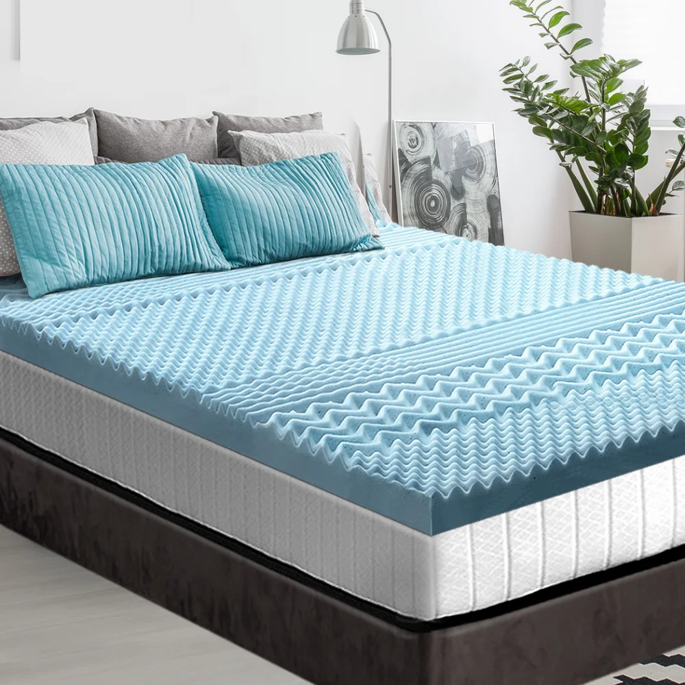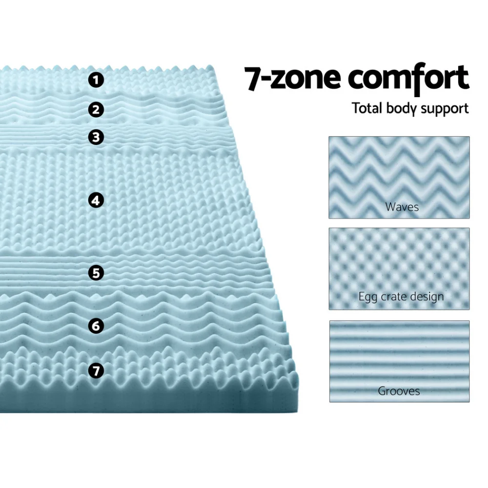 Giselle Bedding Memory Foam Mattress Topper King Single 8cm 7-Zone, Bamboo Cover, Open Cell, Washable, Blue