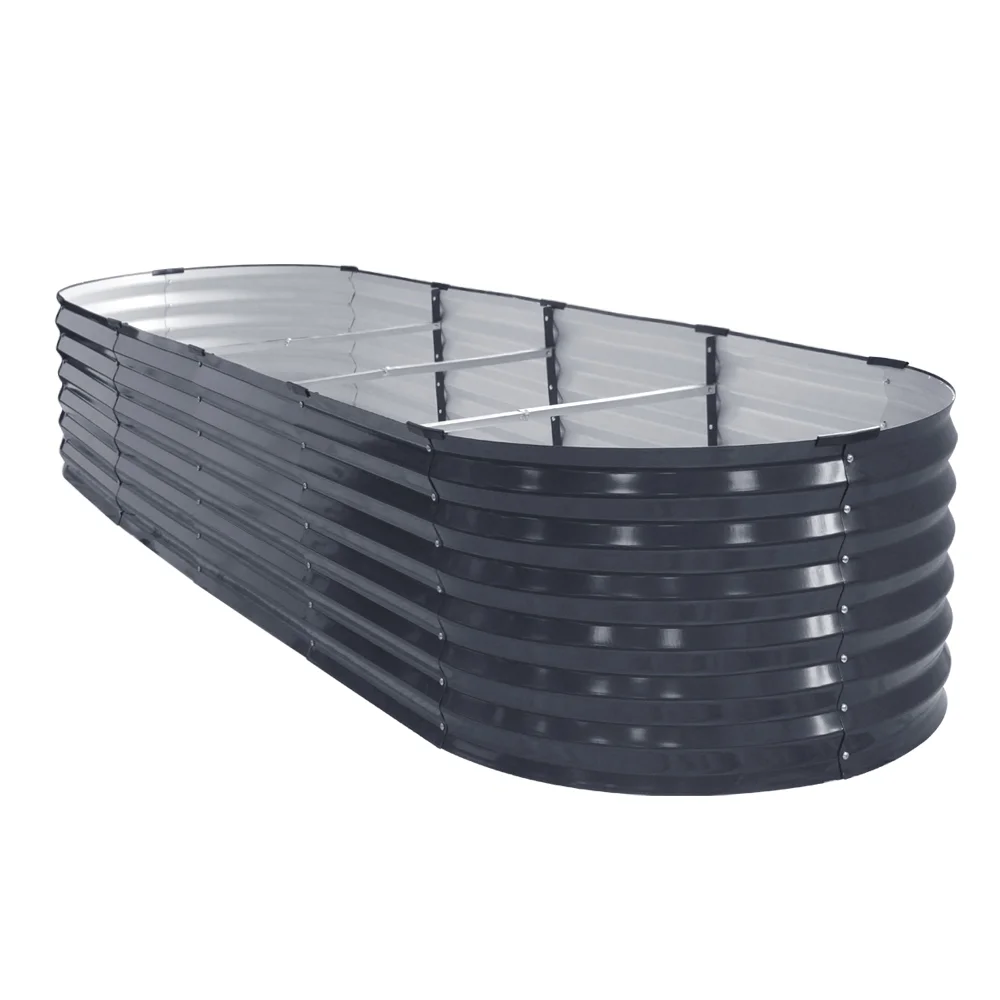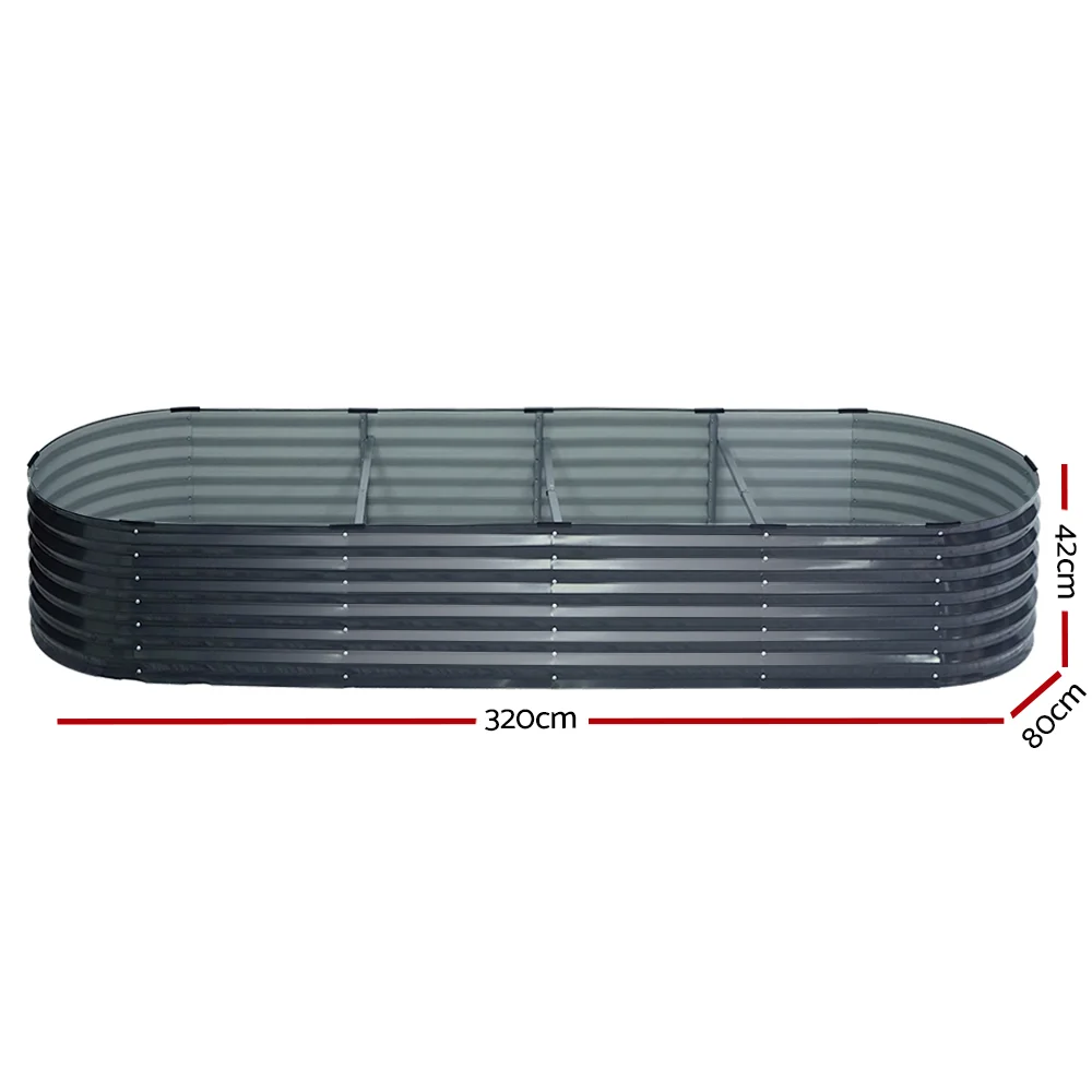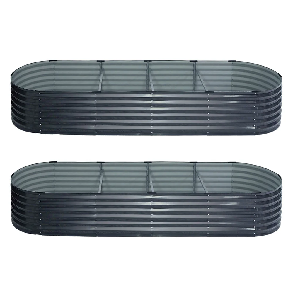2x Green Fingers Galvanised Raised Garden Bed 320x80x42cm Oval Planter Box, Rustproof Steel, Aluminium Grey