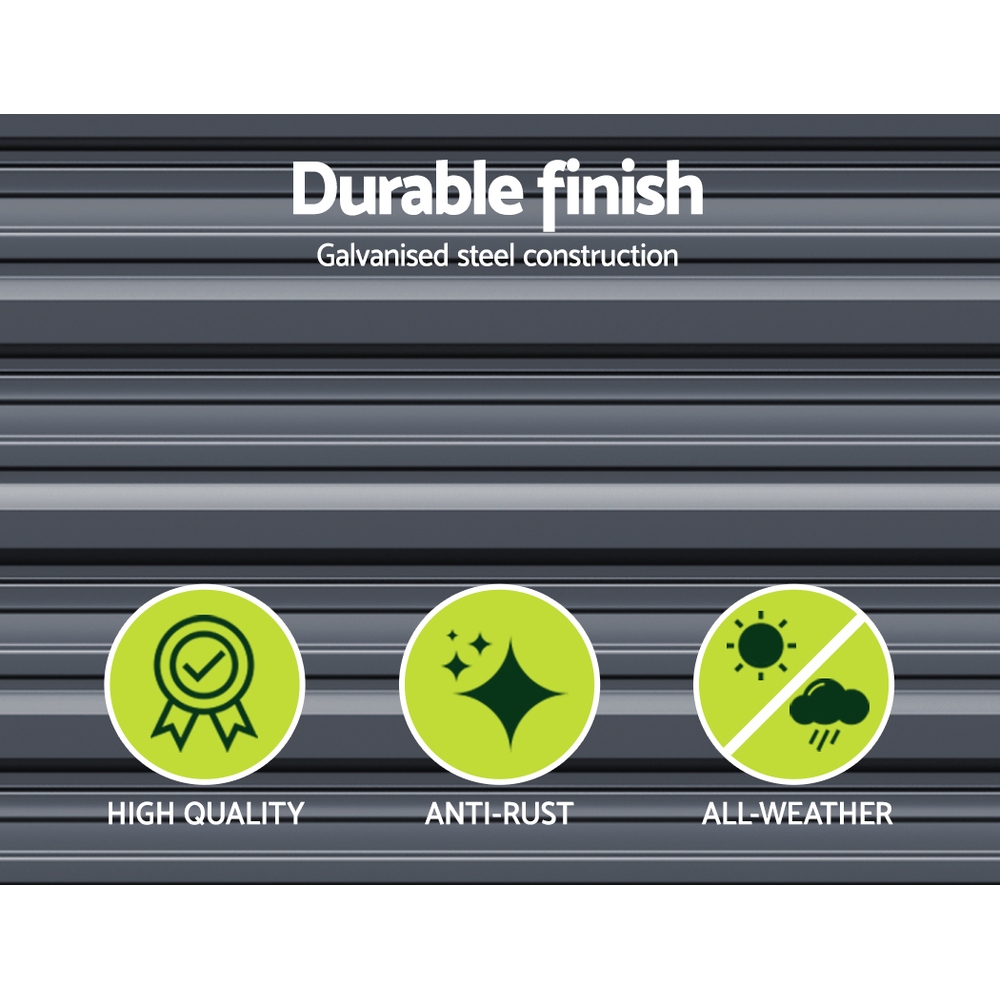 Transform your gardening experience with the Green Fingers Garden Bed, a perfect blend of durability and functionality. Measuring 320x80x77cm, this raised planter box is crafted from high-quality galvanised SGCC steel with an epoxy powder coating, offering rustproof resilience and low chemical reactivity. Its 0.8mm thick construction provides exceptional stability, while the rounded edges ensure safety. Designed for effortless assembly, this planter box is ideal for cultivating a vibrant array of vegetables, herbs, and flowers. Embrace the joy of home farming and watch your garden flourish with Green Fingers.