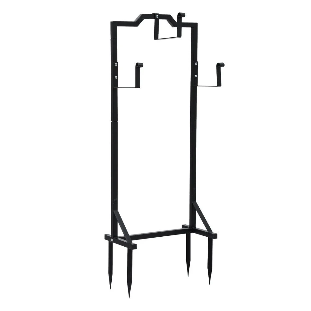 Green Fingers Black Metal Garden Hose Holder, Portable Freestanding Stand with 4 Spikes, Holds 30m, Rust-Resistant Steel