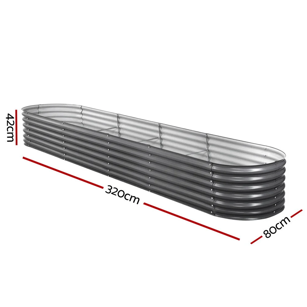 Green Fingers Galvanised Raised Garden Bed 320x80x42cm - Durable SGCC Steel Oval Planter with Safe Rounded Edges