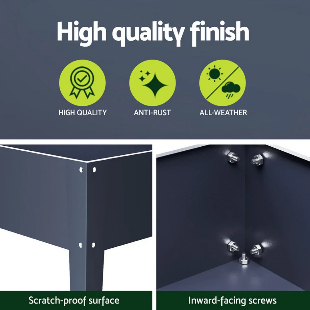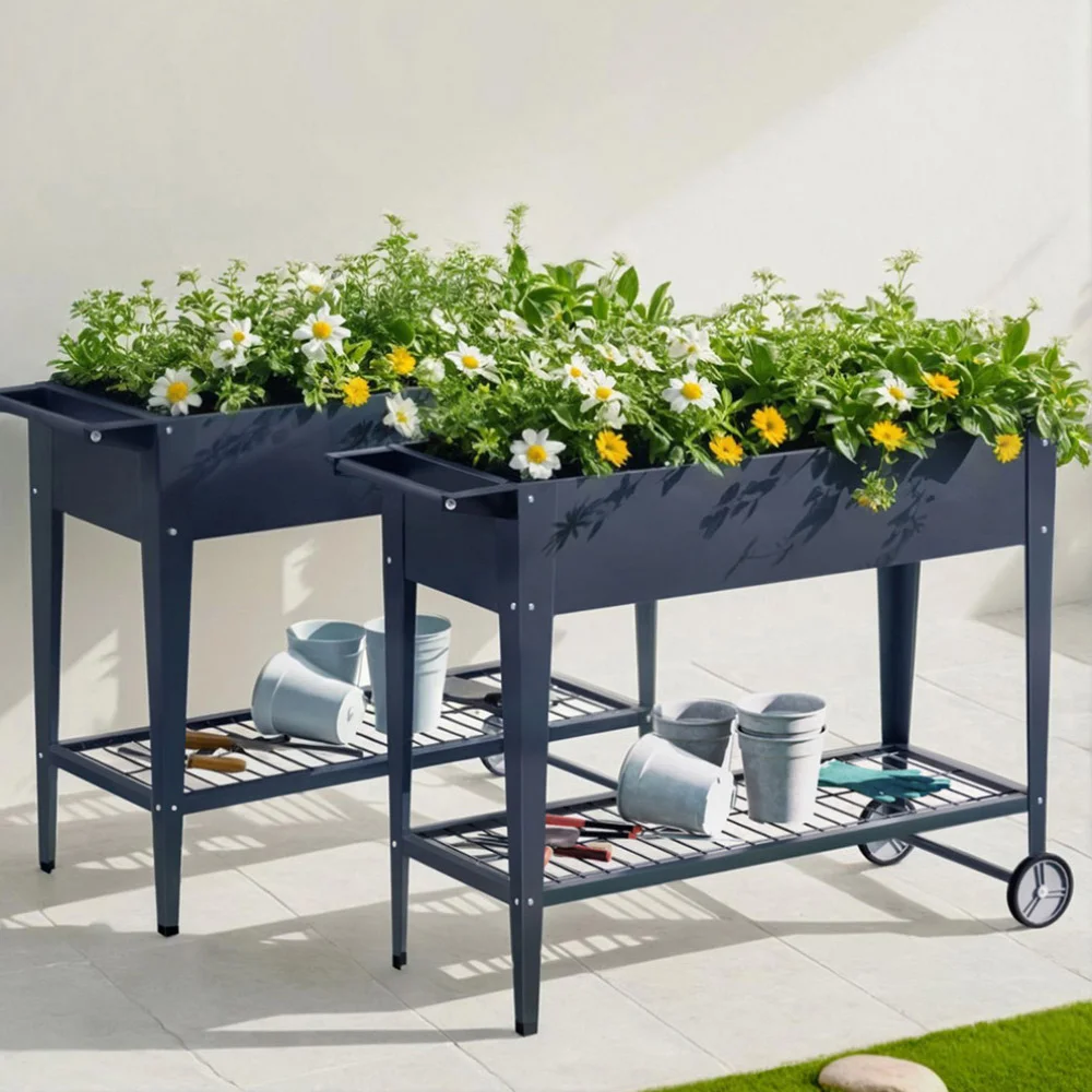 Practical and stylish, the Green Fingers Raised Garden Bed is the ultimate addition to any garden. Made from durable galvanised SGCC steel, this elevated planter box is designed for easy maintenance and long-term use. Its raised design helps prevent pests and excess moisture, while smooth wheels and a comfortable handle make it simple to move. An extra storage shelf keeps your tools organised. Perfect for growing fresh vegetables, herbs, or flowers. Assembly is easy with included tools and instructions. A thoughtful gift for gardening enthusiasts, with a 1-year warranty.