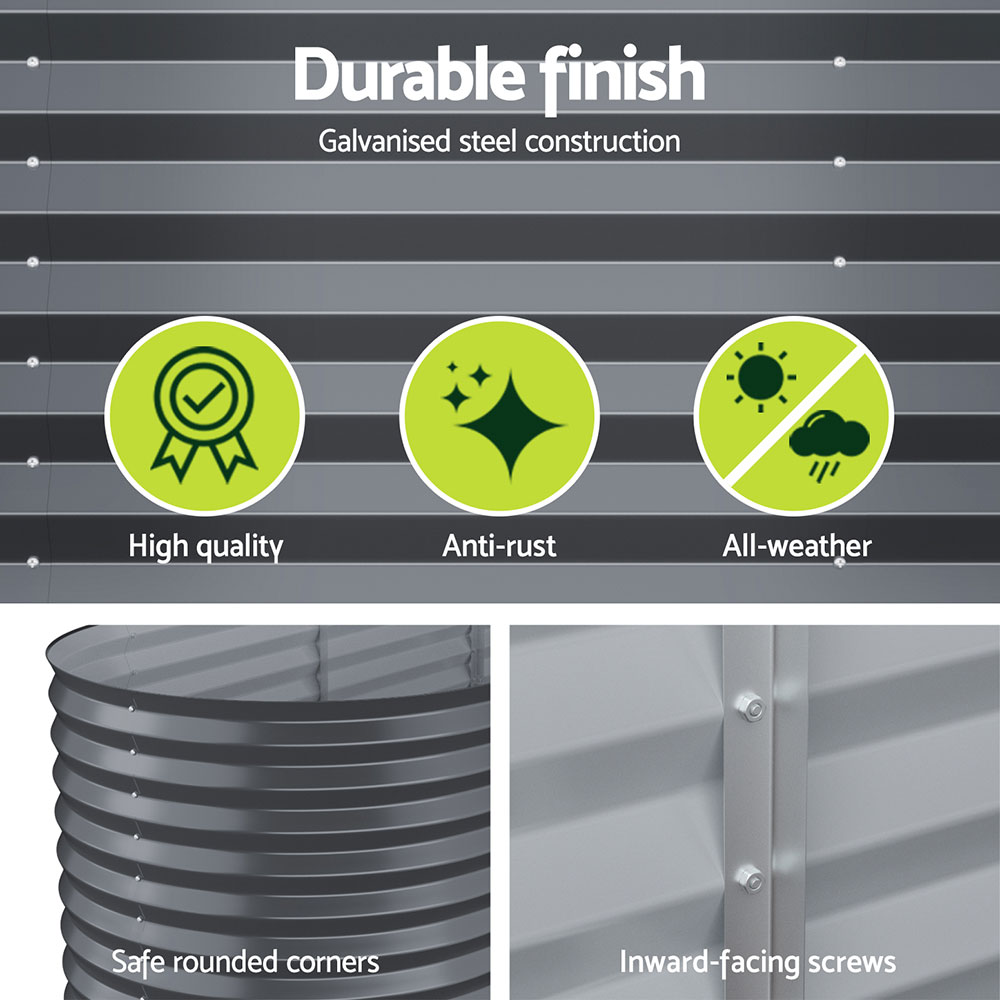 Green Fingers 180x90cm Galvanised Steel Raised Garden Bed - Rustproof, Durable Planter Box for Vegetables & Herbs