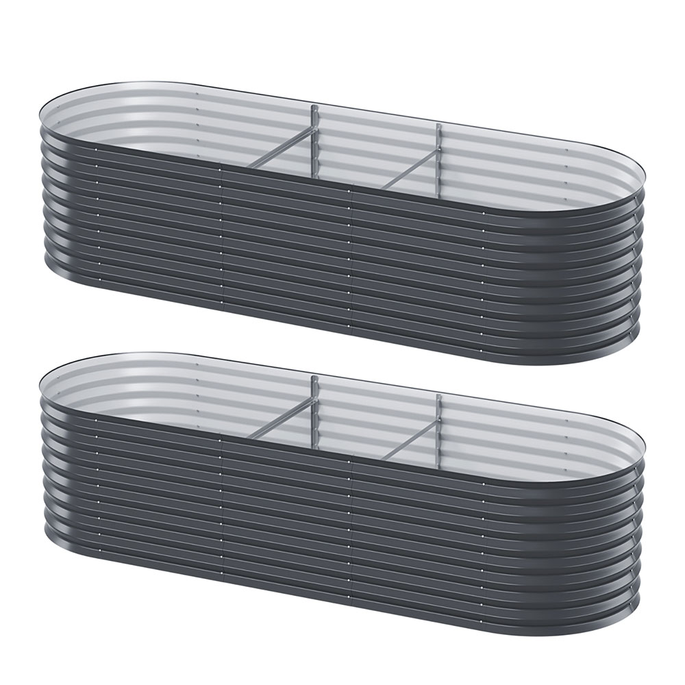 Green Fingers 2x Raised Garden Beds 240x80x42cm Oval Galvanised Steel Planter Boxes, Rustproof, Aluminium Grey