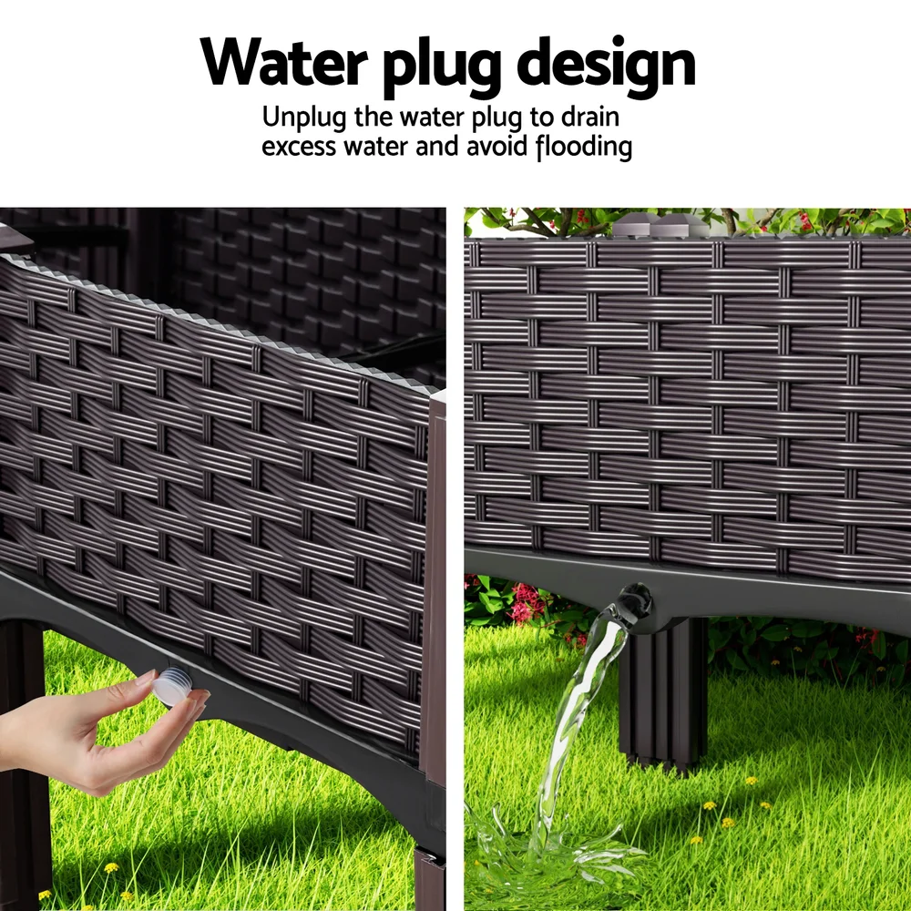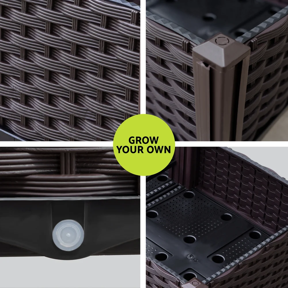 Green Fingers Raised Garden Bed 120x40x36cm Durable PP Planter Box with Drainage, Indoor Outdoor Herb and Veg Container