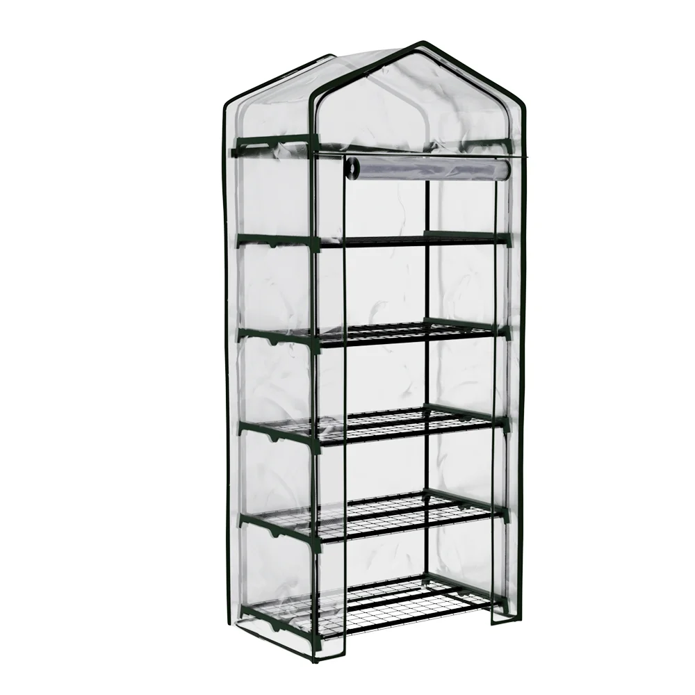 Introducing the Greenfingers Greenhouse - your all-weather solution for thriving greens in any season. Perfect for decks, patios, or small gardens, this 5-tier mini greenhouse shelters plants from harsh weather and pests. Its durable PVC cover and roll-up zipper door ensure easy access and optimal growth conditions. With plant shelves and a tear-resistant, waterproof design, enjoy fresh, home-grown produce year-round. Easy to install and backed by a 1-year warranty, it's time to elevate your gardening game.