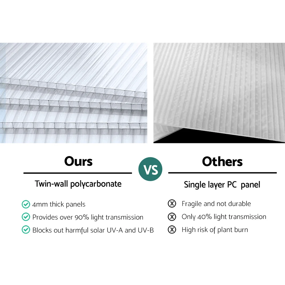 Greenfingers 3x2.5x1.95M Aluminium Polycarbonate Greenhouse with Twin-Wall Panels, Lockable Door, and Gutter System