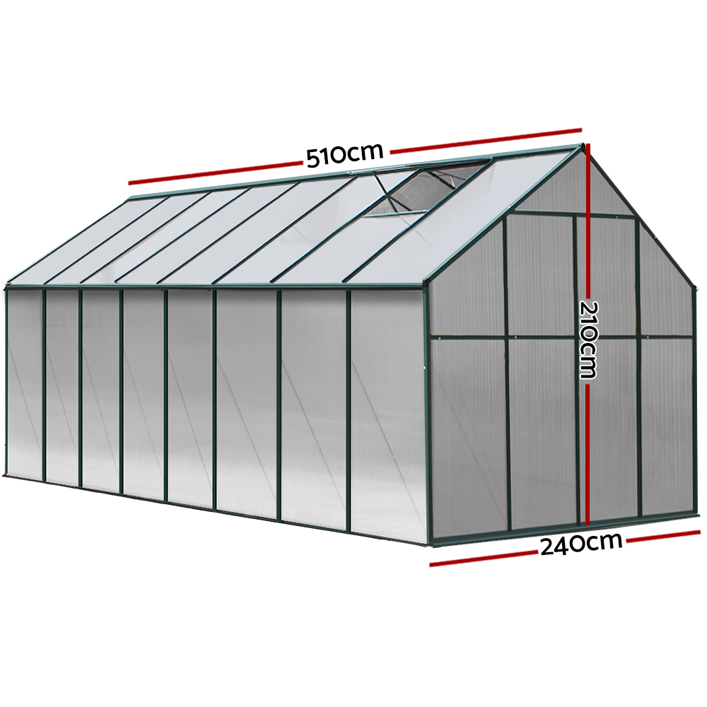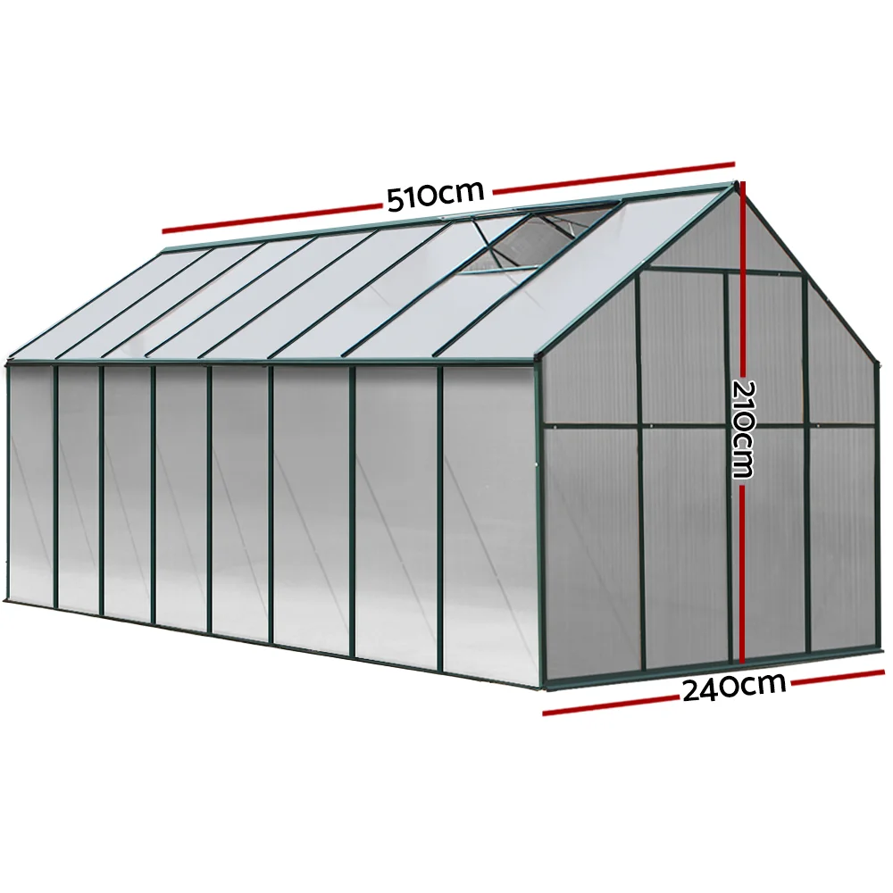 Greenfingers 5.1x2.44x2.1M Aluminium Polycarbonate Greenhouse with UV-Resistant Panels & Adjustable Roof Vents