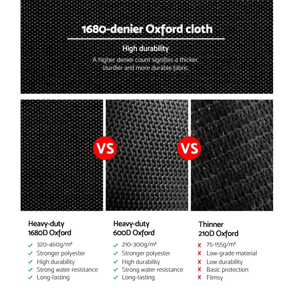 - Fabric material: 1680D oxford (exterior) and 1680D diamond texture Mylar (inner)