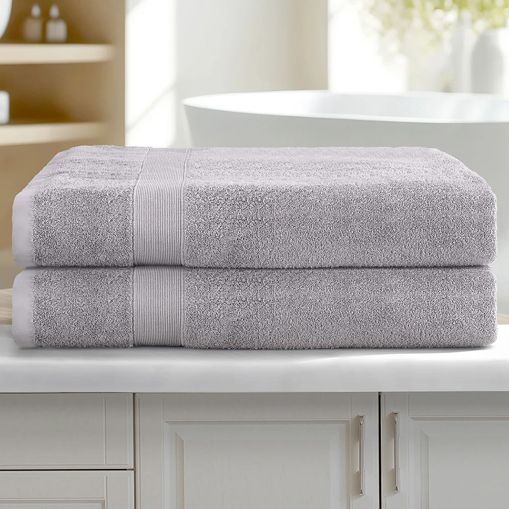 Wrap yourself in spa-like luxury with this 2 Pack Bath Sheets Set in elegant grey. Each extra-large towel is crafted from 100% cotton with a plush 550gsm weight, offering unbeatable softness, breathability, and absorbency. The double-stitched edges and sophisticated border design enhance durability and style, while the quick-drying fabric ensures everyday practicality. Enjoy effortless care—simply machine wash for fresh, long-lasting comfort in every bath.
