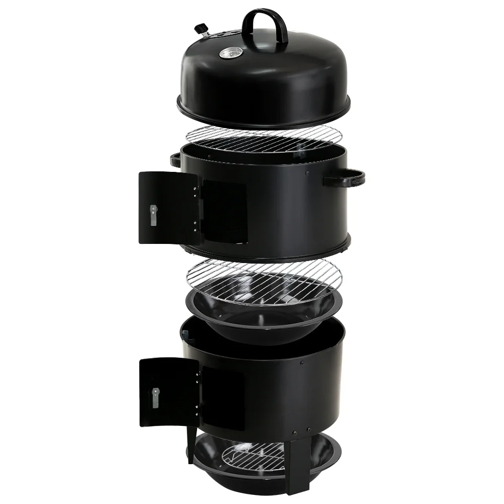 GRILLZ Charcoal BBQ Smoker, Heavy-Duty Steel, 38cm, Black - 3-in-1 Smoker, Griller & Roaster for Flavorful Cooking