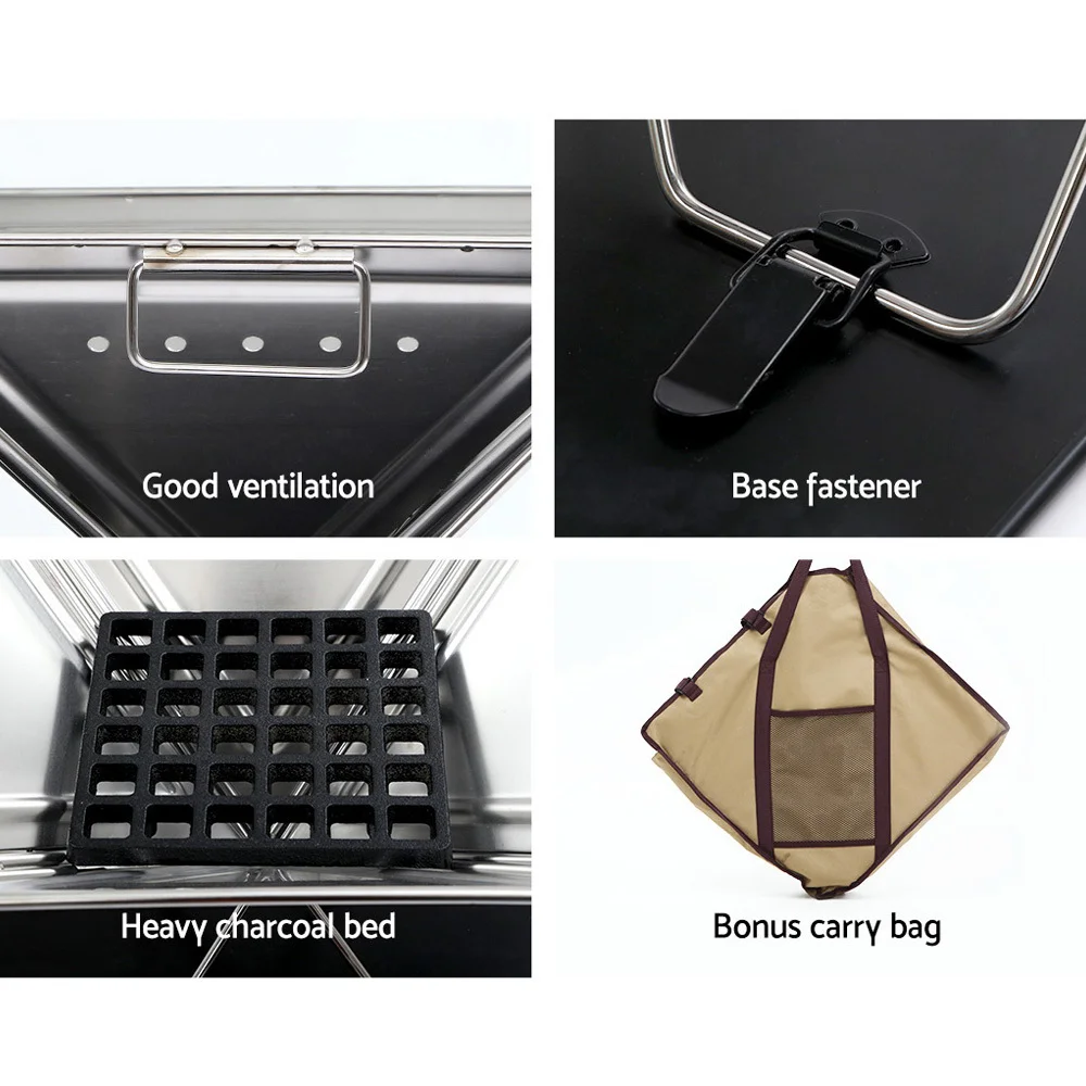 Grillz Portable Fire Pit BBQ Grill, Stainless Steel, 34x41x32.5cm, Includes Carry Bag, Perfect for Camping & Patios