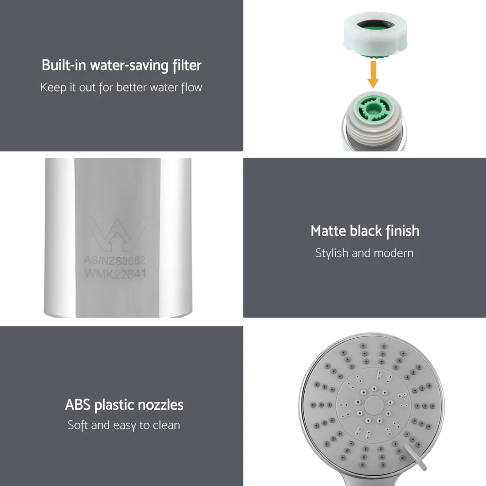 Handheld Shower Head 4.5" High Pressure 5 Spray Modes Chrome ABS Durable Water-Saving Filter Australian Standard