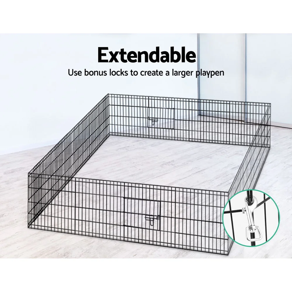 The i.Pet 24" 8 Panel Dog Playpen is the perfect solution for giving your pet a safe and fun play area. Crafted from durable powder-coated steel, this versatile playpen can be configured into various shapes like octagons or squares. Expand your pet's playground by joining two sets together. With secure bolt latches, round edges, and easy foldability, it's ideal for indoor or outdoor use. Suitable for dogs, rabbits, and more, this playpen ensures peace of mind while your pet enjoys playtime.