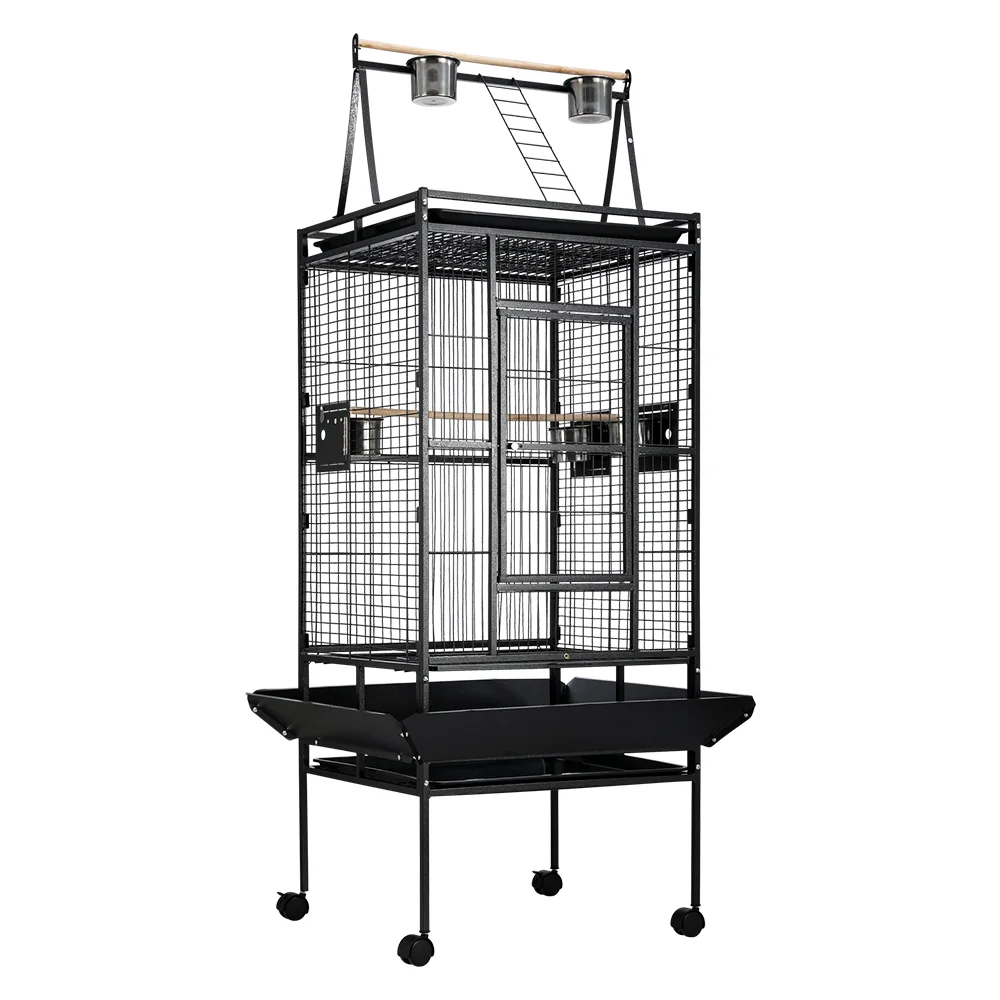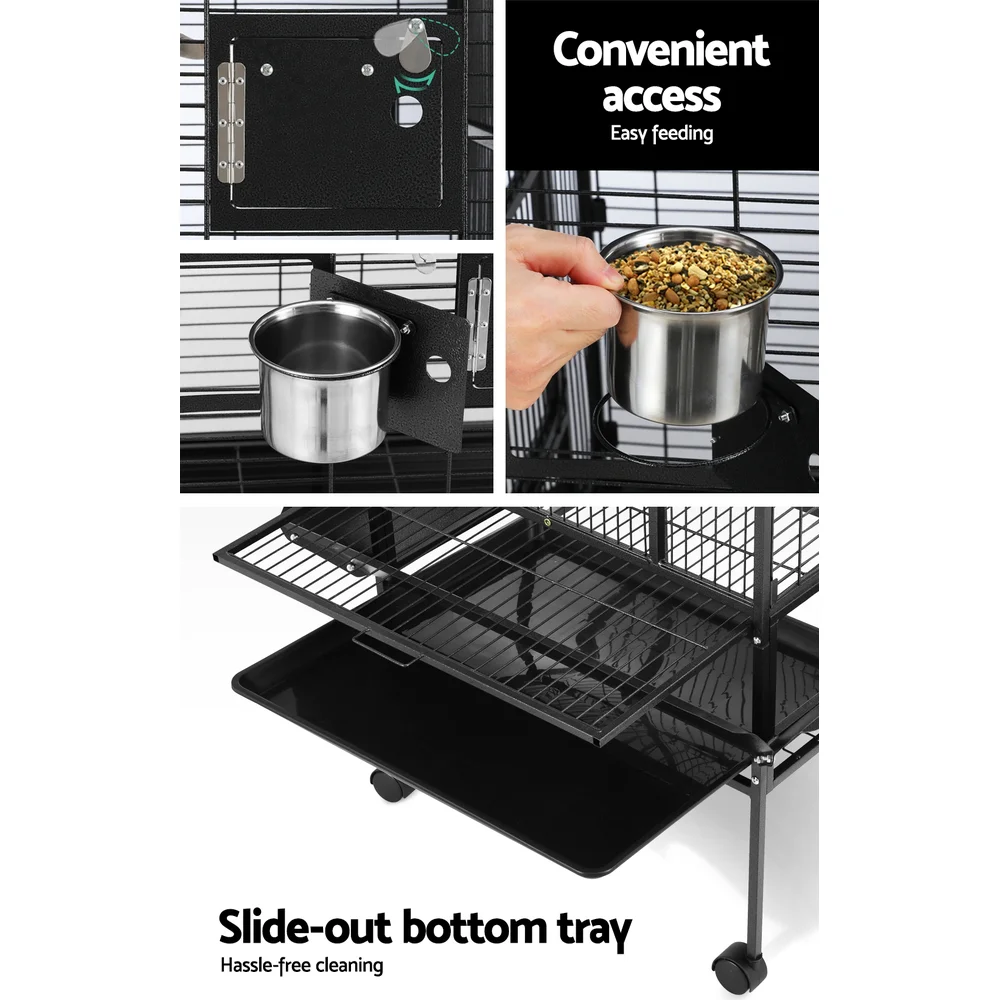 i.Pet 144cm Large Bird Cage Aviary, Black Wrought Iron, Mobile with Lockable Casters, Easy-Clean Tray, Ideal for Birds