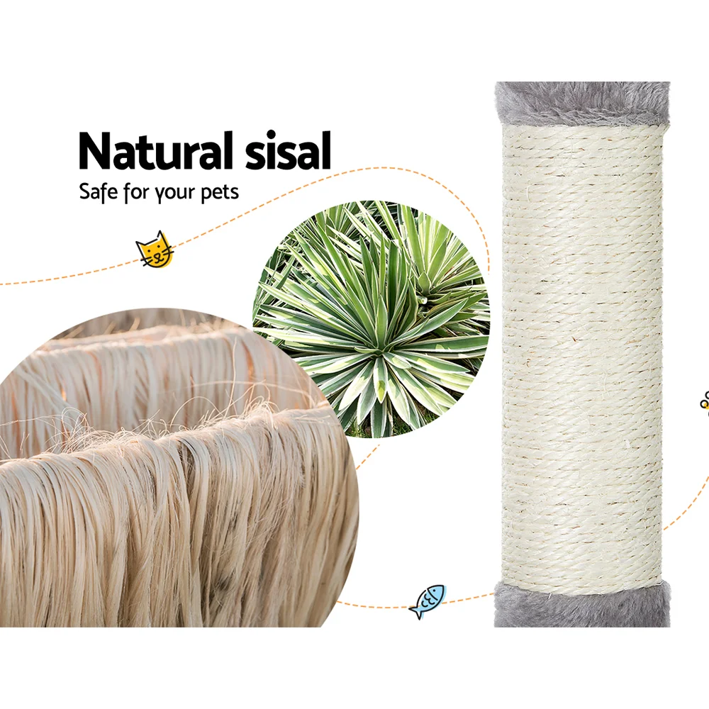 i.Pet 180cm Cat Tree Tower - Plush Velvet Condo, Natural Sisal Scratcher Poles, Multi-Level Playhouse, Grey