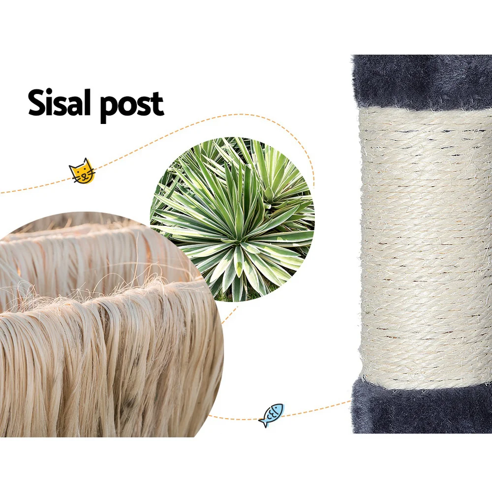 i.Pet Luxury Cat Tree Tower - 138cm Grey Condo with Sisal Posts, Plush Velvet, Multi-Level Design & Stable Base