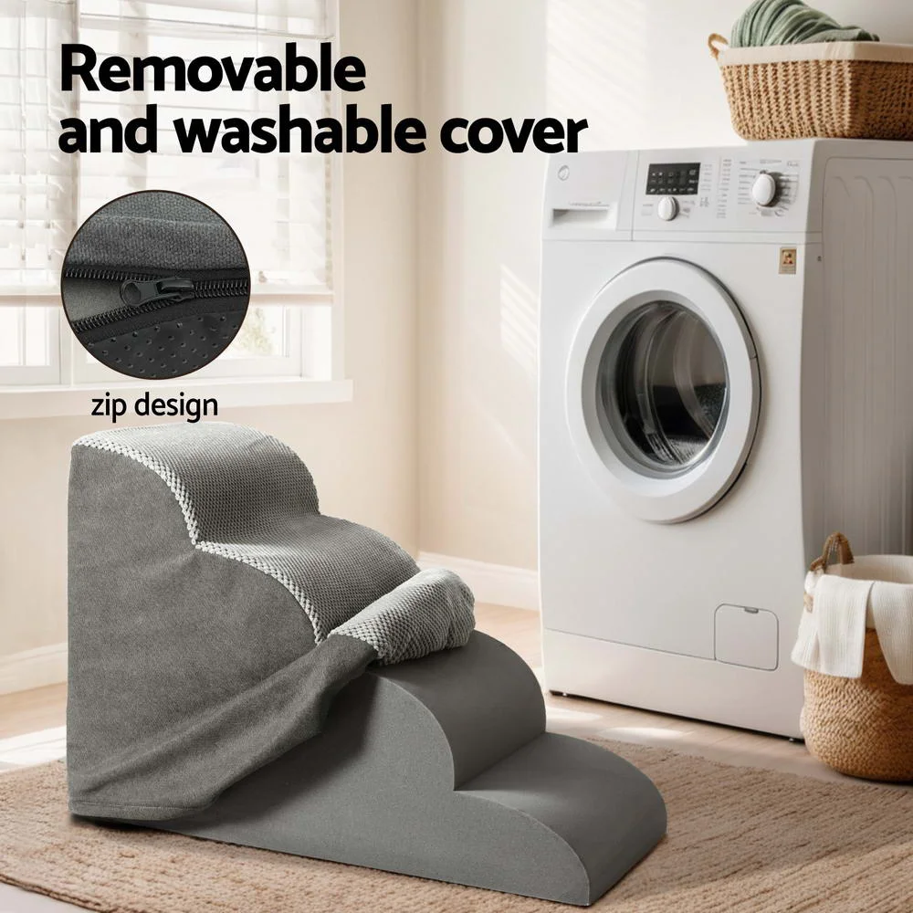 i.Pet Dog Ramp Steps: 3-Tier Foam Pet Stairs for Bed & Sofa, Non-Slip Suede, Water-Resistant, Machine Washable, Grey