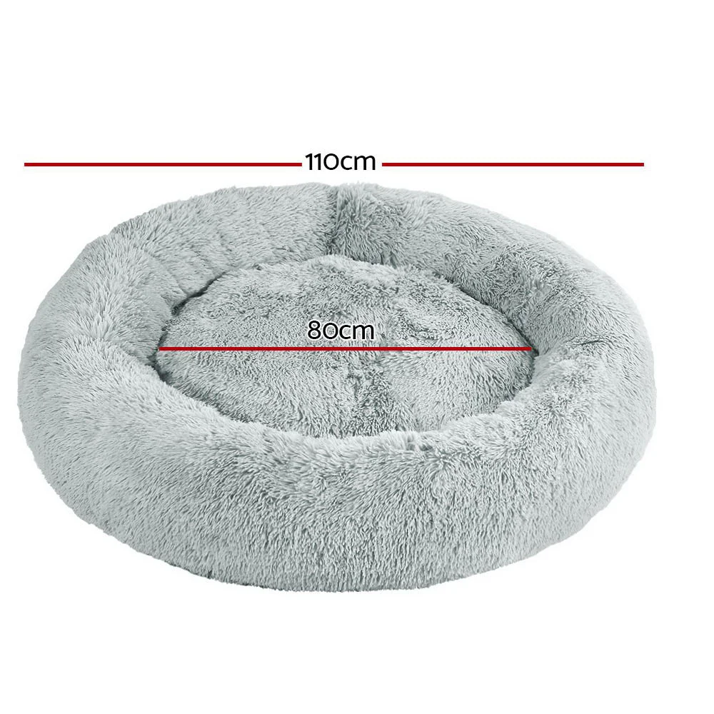 i.Pet Extra Large Calming Pet Bed 110cm - Soft Plush Light Grey, Non-Slip, Washable Cover, Flea & Bacteria Resistant