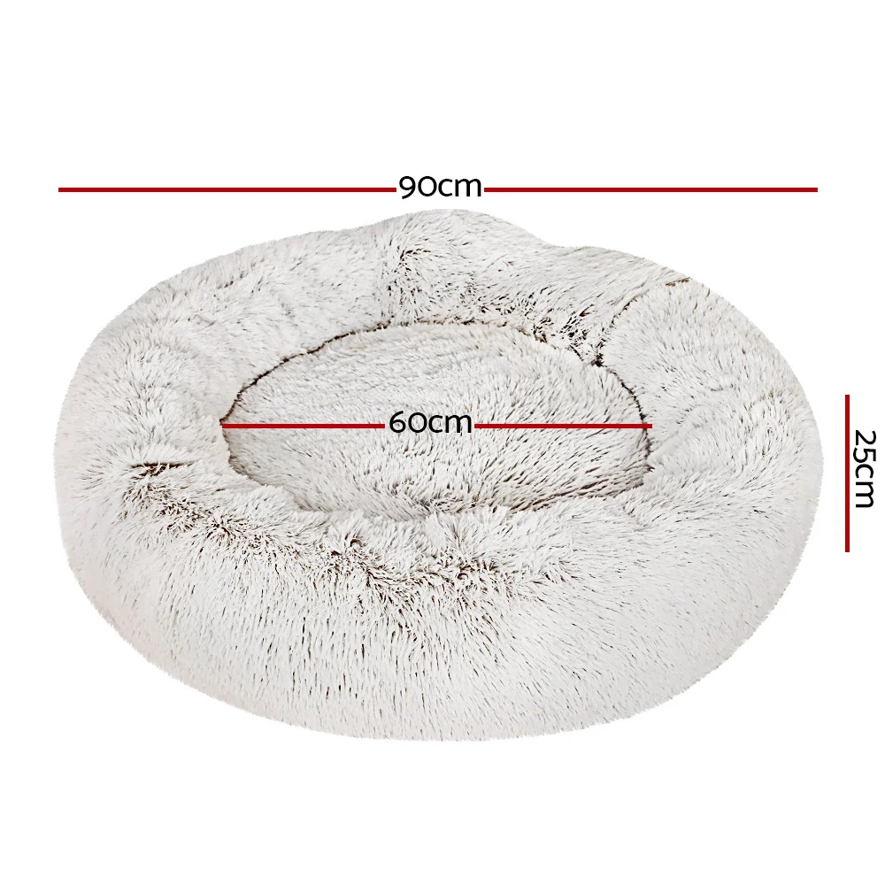 i.Pet 90cm Large Calming Pet Bed – Soft Plush, Non-Slip, Removable Cover, Flea-Resistant, White/Brown