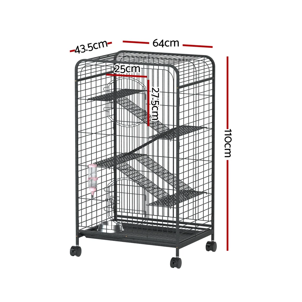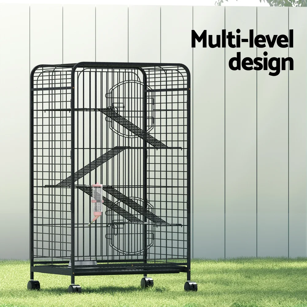i.Pet 4-Level Indoor Pet Cage Hutch for Rabbits, Guinea Pigs, Ferrets & More, 110cm, Durable Black Metal, Easy to Clean