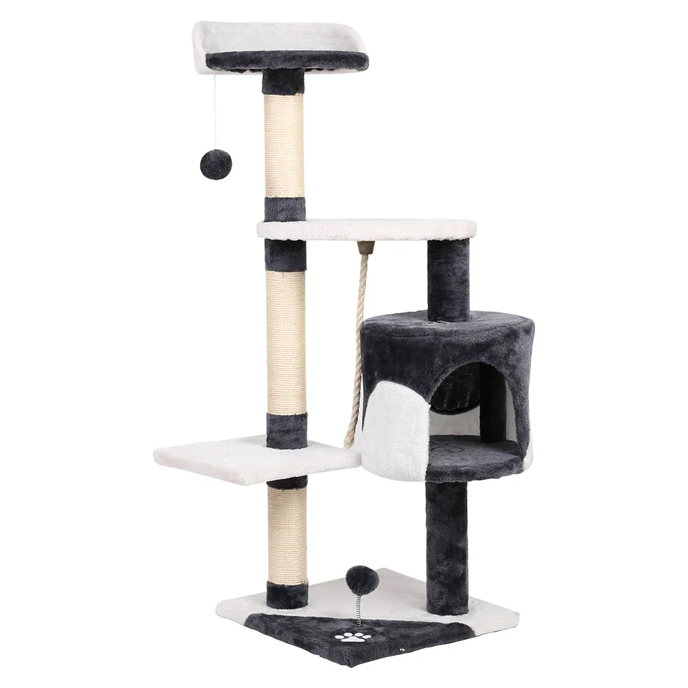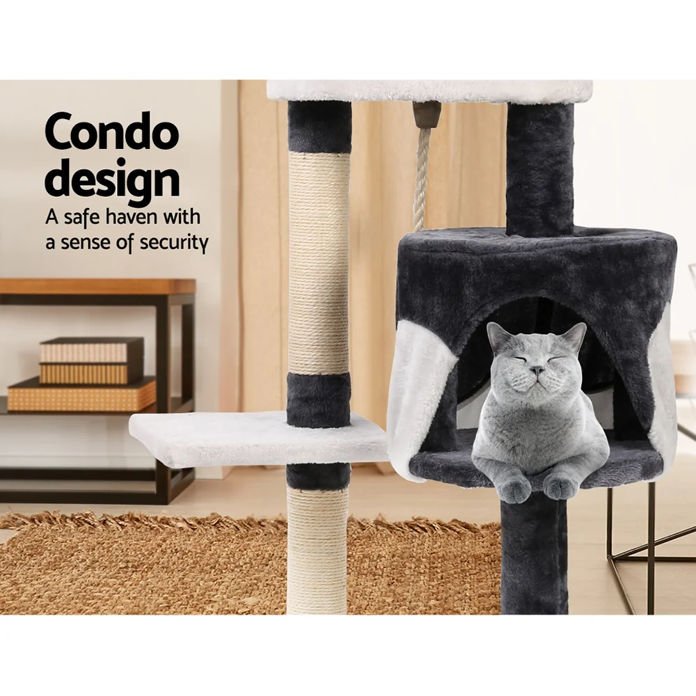 i.Pet 143cm Cat Tree Tower Condo - Grey Plush Velvet, Sisal Posts, Multi-Level, Stable Base, Hanging Ball Fun