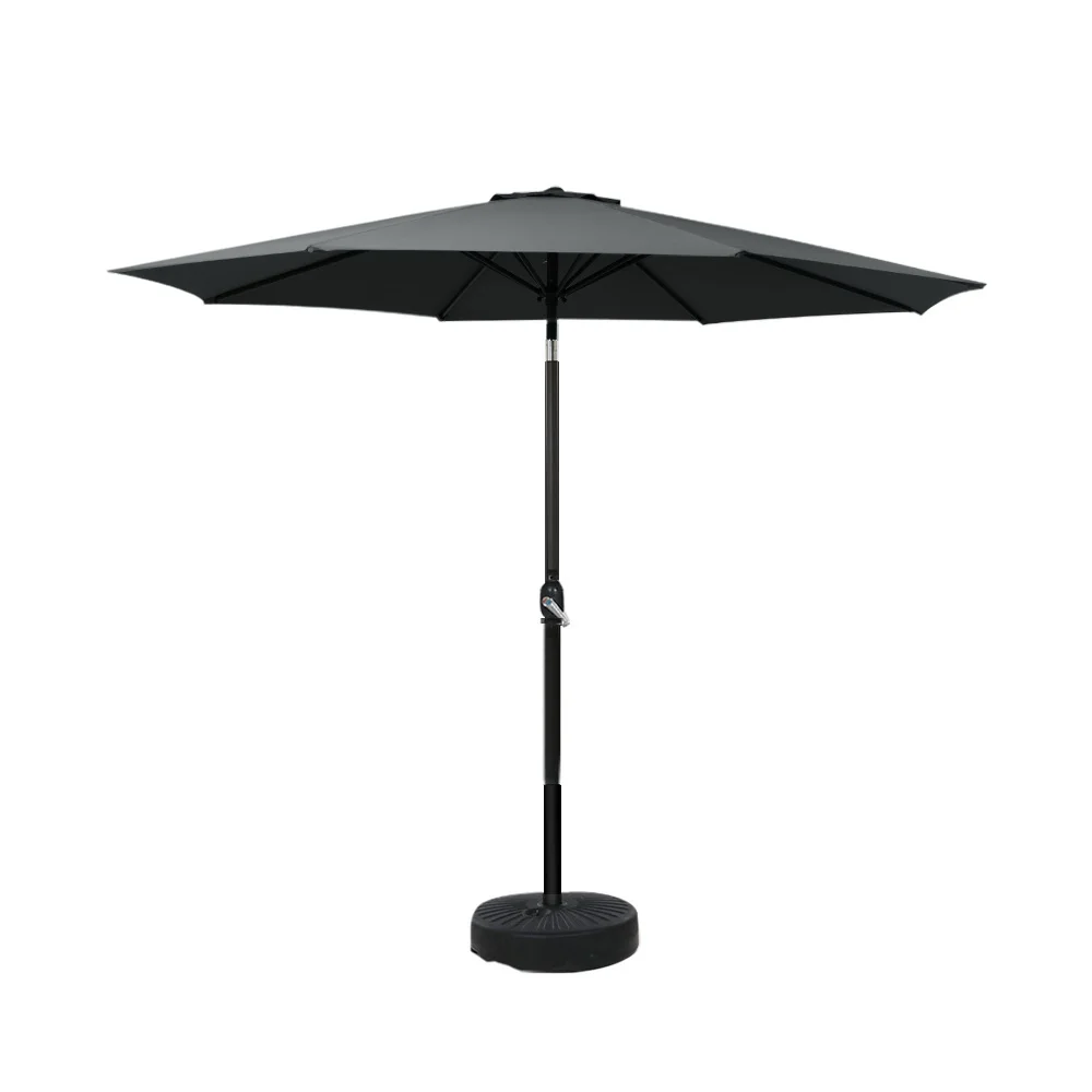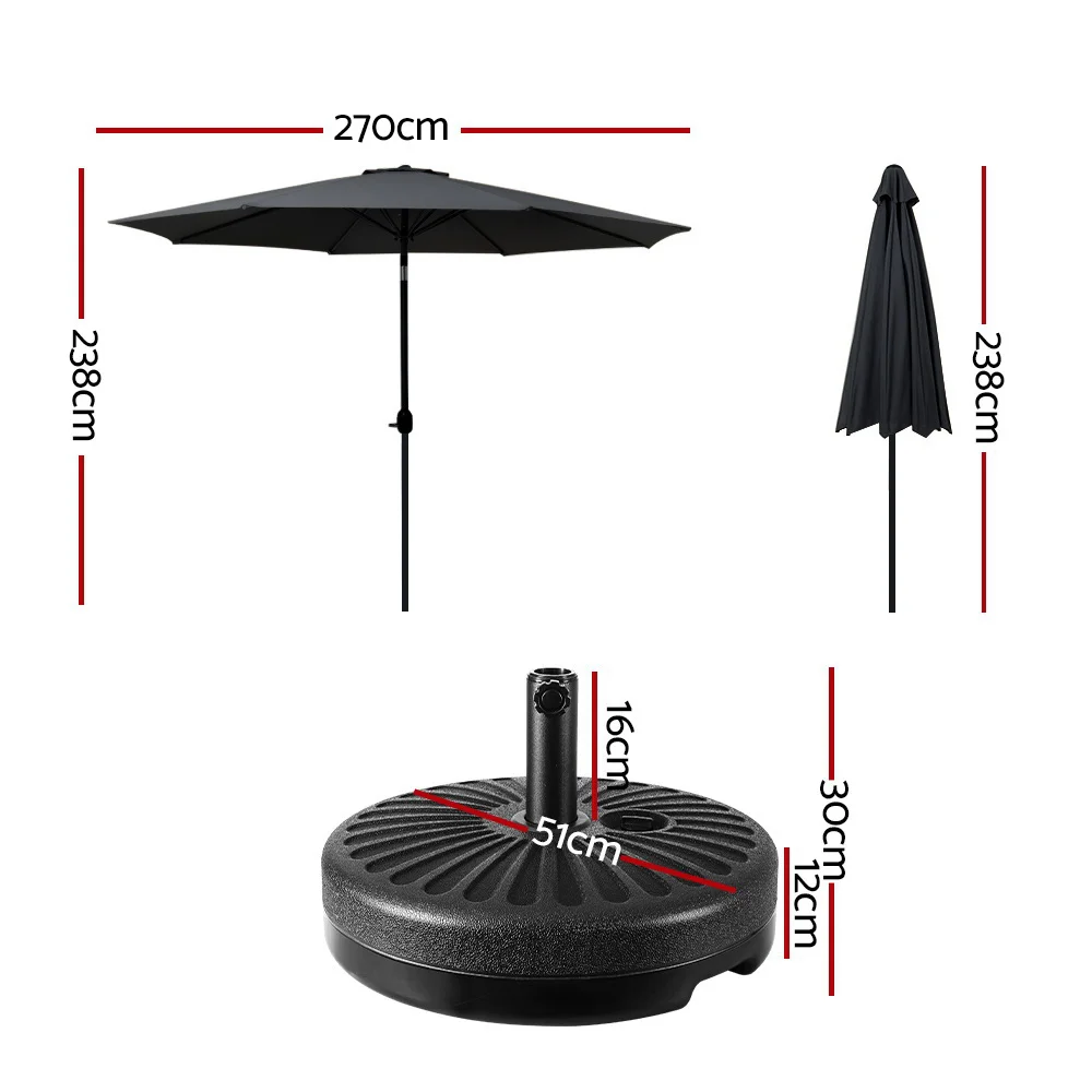 Instahut 2.7m Outdoor Umbrella with UV50+ Black Canopy, Tilt Feature, Steel Frame & Water-Fillable Base