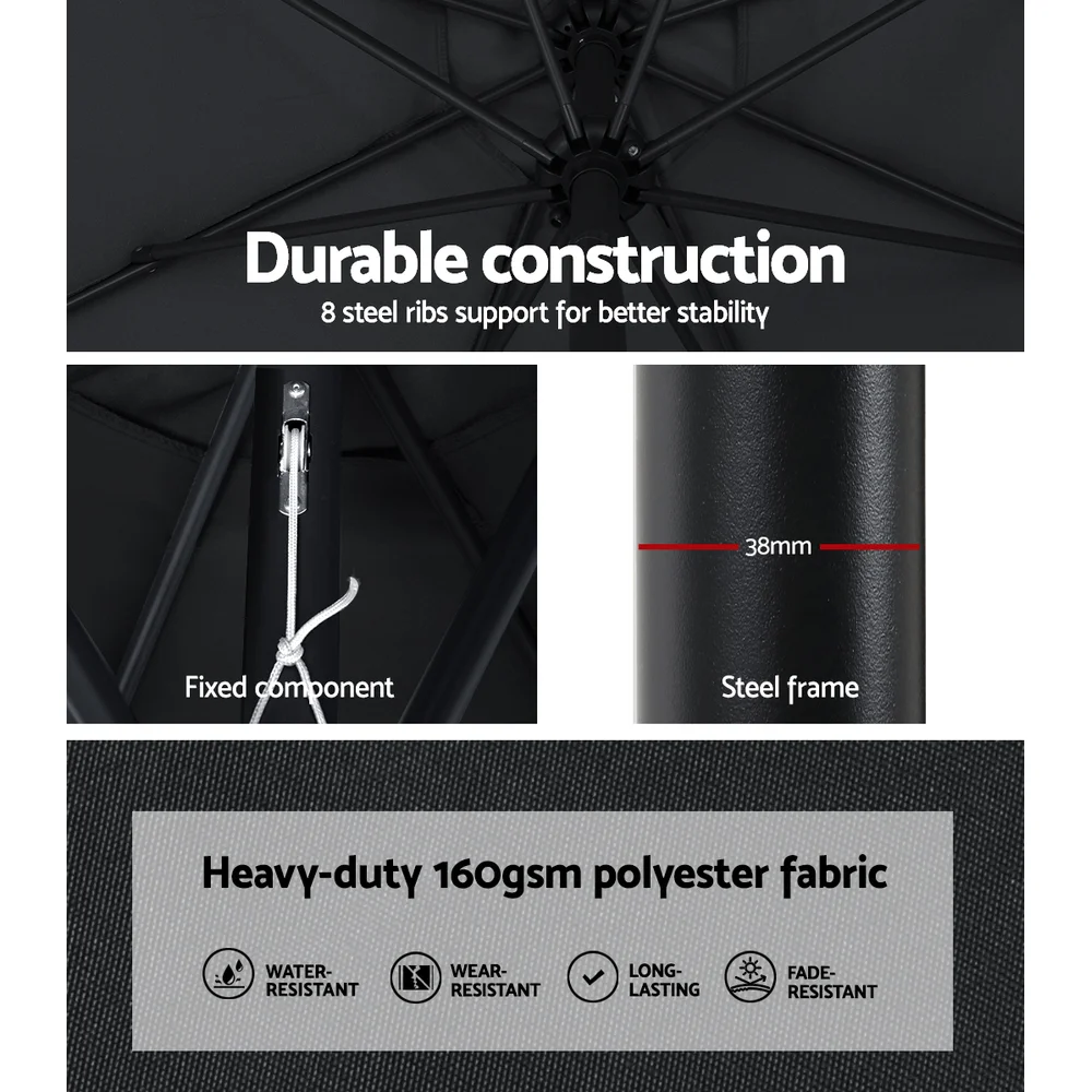 Instahut 3m Charcoal Cantilever Umbrella w/ Base – UV50+ Water-Resistant Polyester Canopy for Beach & Garden