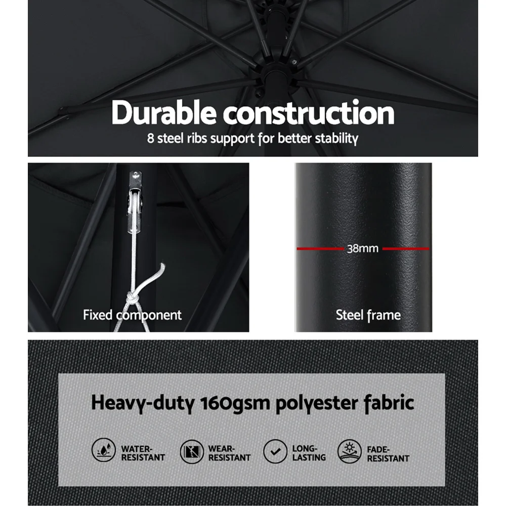 Instahut 2.7m Black Outdoor Umbrella - UV50+ Water-Resistant Polyester Canopy, Steel Frame, Tilt Feature, No Base