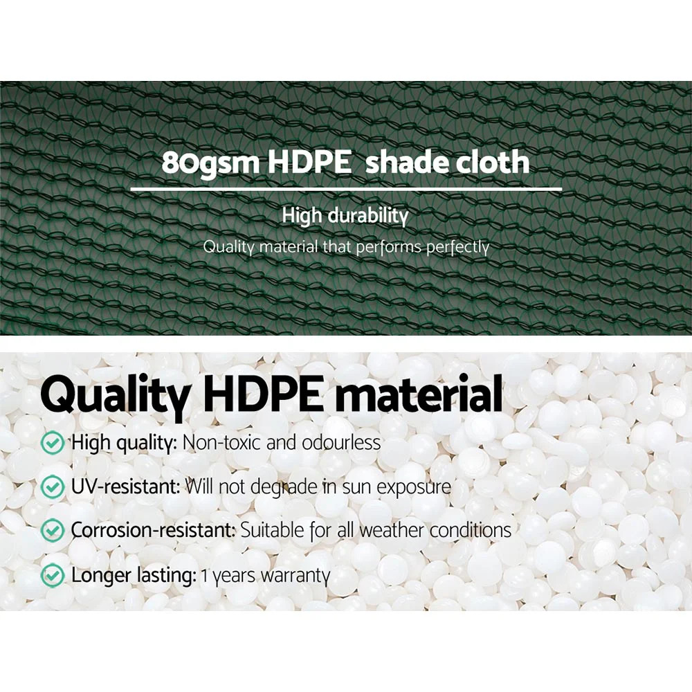 Shield your plants from the harsh summer sun with the Instahut 30% Shade Cloth. Designed for the Australian climate, this heavy-duty green cloth is perfect for protecting orchids, ferns, and large olive trees. Made from durable, UV-stabilised HPDE mono-tape knitted fabric, it resists tears and fraying while providing a 30% shade block. Easy to install, this 1.83m x 30m roll can also serve as fencing for agriculture and home use, ensuring a healthy environment for your horticultural pursuits.