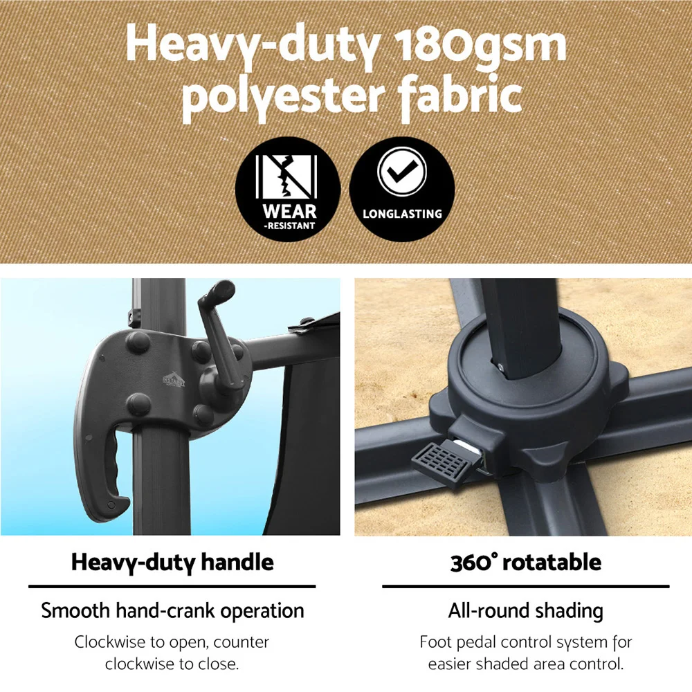 Instahut 3m Beige Cantilever Outdoor Umbrella with Base - UV50+ Water-Resistant Polyester Canopy, Steel Frame