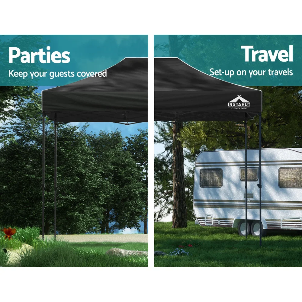 Instahut 3x4.5m Pop Up Gazebo - 500D Oxford Fabric, UV & Water Resistant, Easy Setup, Adjustable Height, Black