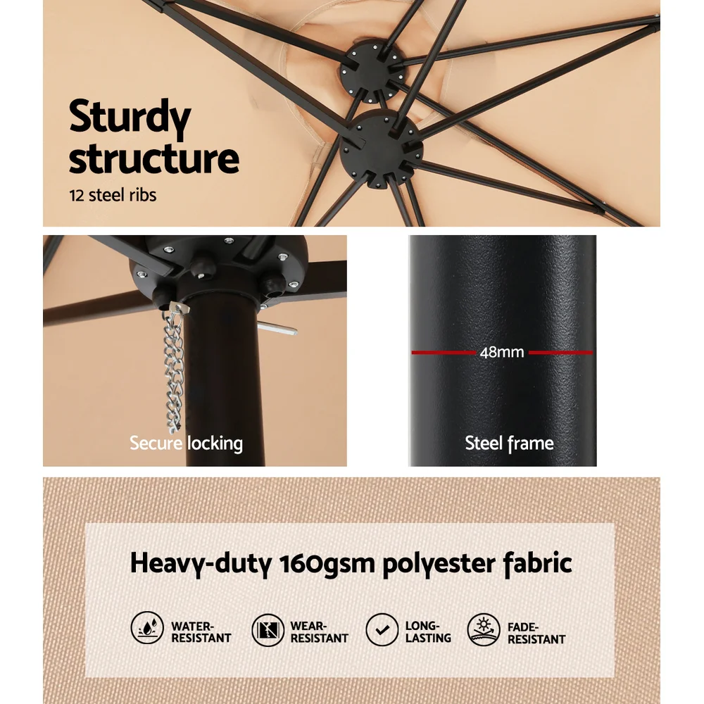 Instahut 4.57m Double-Sided Outdoor Umbrella & Base, UV50+ Water-Resistant Polyester, Steel Pole & Ribs, Beige