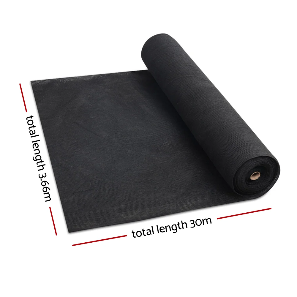 Instahut 30% UV Shade Cloth 3.66x30m - Heavy Duty Black HDPE, Tear-Resistant, UV-Stabilised for Greenhouses & F