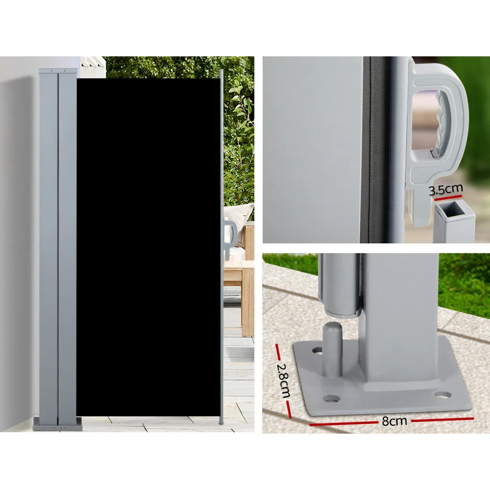 Instahut Retractable Side Awning 2x3M Black, UV Resistant Outdoor Privacy Screen, Tearproof Polyester, Steel Frame