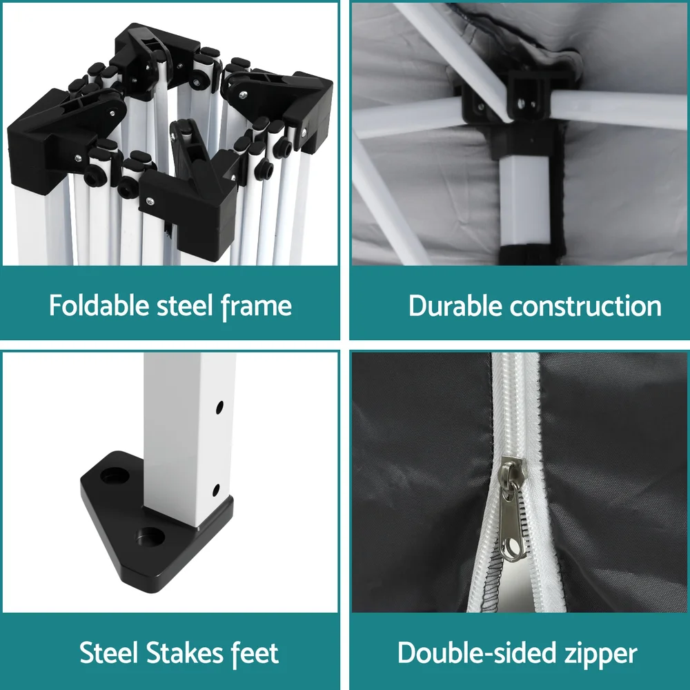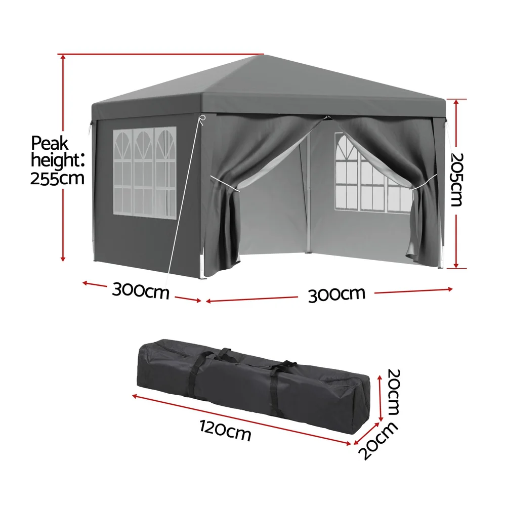 Instahut 3x3m Grey Pop Up Gazebo Marquee Tent - UV-Resistant, Adjustable Height, Easy Setup, with Carry Bag & Panels