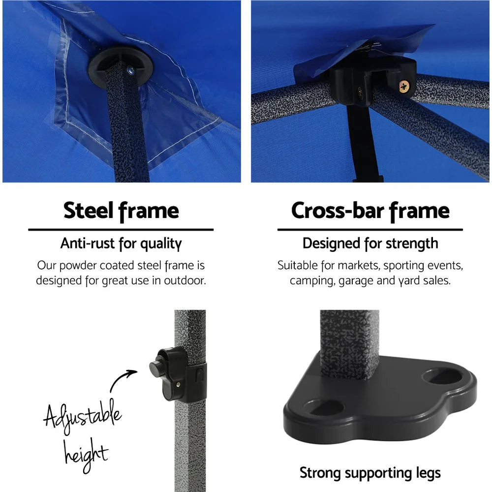 Instahut 3x3m Blue Pop-Up Gazebo with Base Pods - UV & Water Resistant, 3 Heights, Quick Set-Up for Outdoor Events