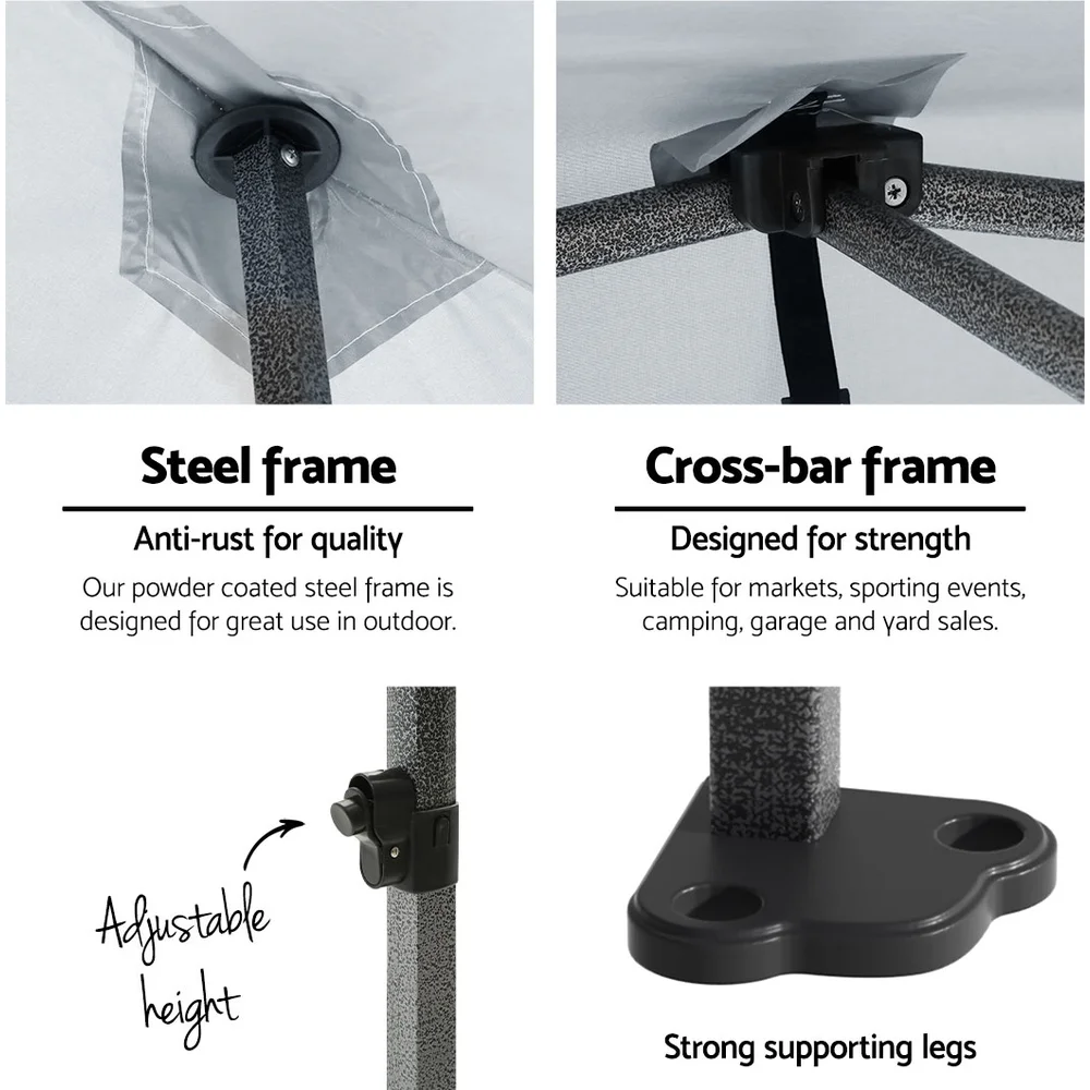Instahut 3x3 Pop Up Gazebo Marquee Tent - 500D UV/Water Resistant Fabric, Steel Frame, Adjustable Heights, Base Pods