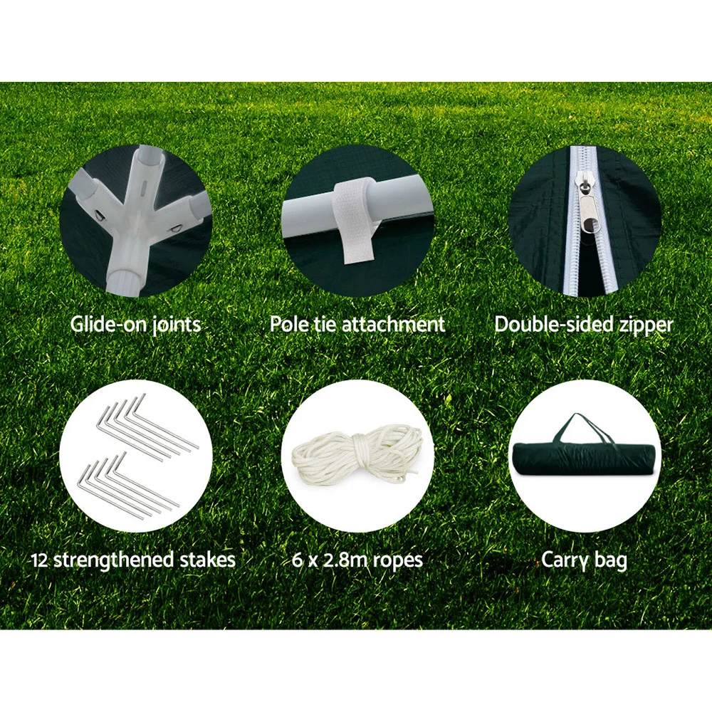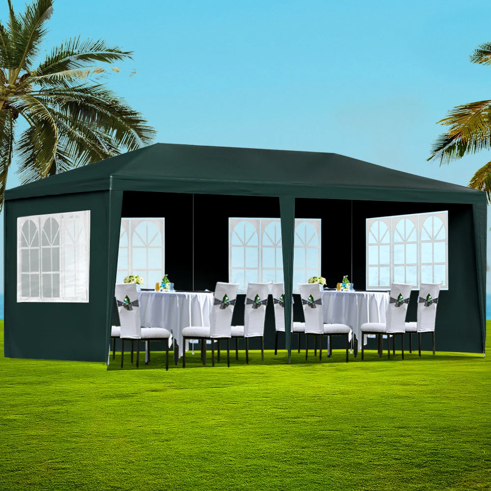 Instahut 3x6m Wedding Party Gazebo - Green Marquee Tent, UV & Water-Resistant, Steel Frame, 4 Removable Panels