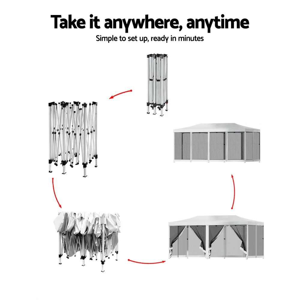 Instahut 3x6m Pop-Up Gazebo Tent with Mesh Wall - UV & Water-Resistant, Adjustable Height, for Outdoor Events