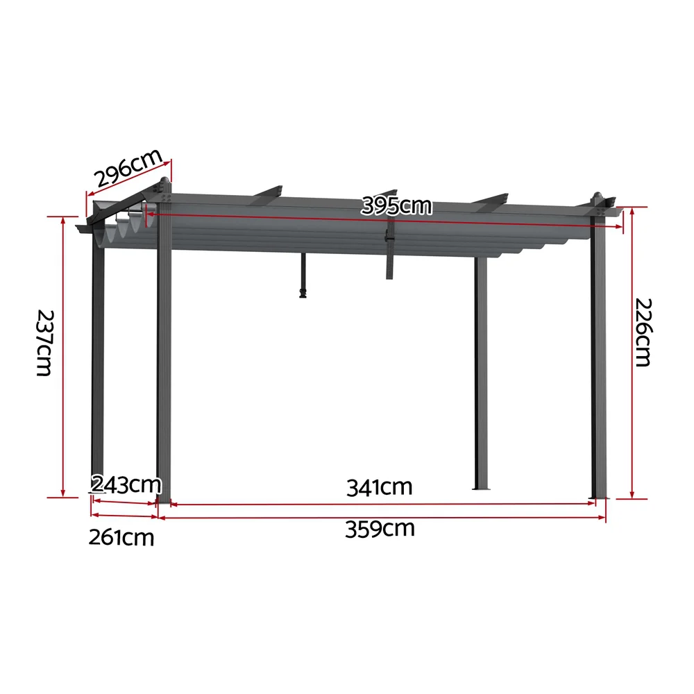Instahut 3x4m Aluminium Frame Gazebo Pergola with Adjustable UV-Resistant Canopy, Water Resistant, Grey Outdoor Shelter
