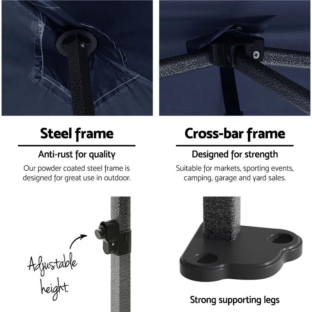 Instahut 3x3m Navy Pop Up Gazebo - Durable 500D Oxford Fabric, UV & Water Resistant, Easy Setup & Adjustable Heights