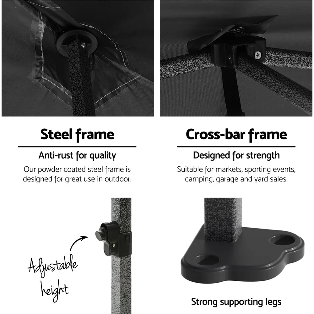 Instahut 3x3 Pop Up Gazebo Marquee Tent – 500D Oxford Fabric, UV & Water Resistant, Easy Set-Up, Adjustable Heights