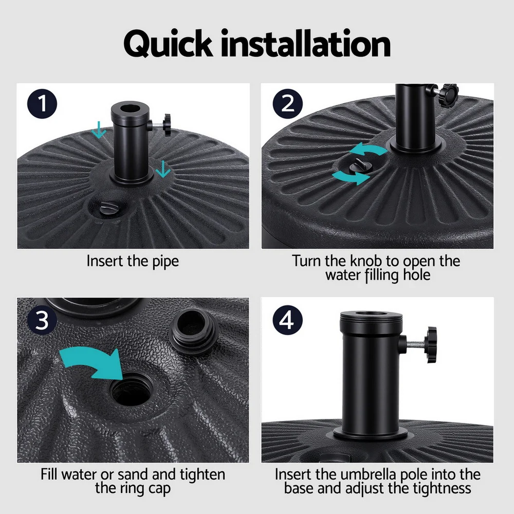 Instahut Outdoor Umbrella Base Weight - Sturdy PE Plastic, Fillable, Fits 30-48mm Poles, 22kg Water-Filled Stability