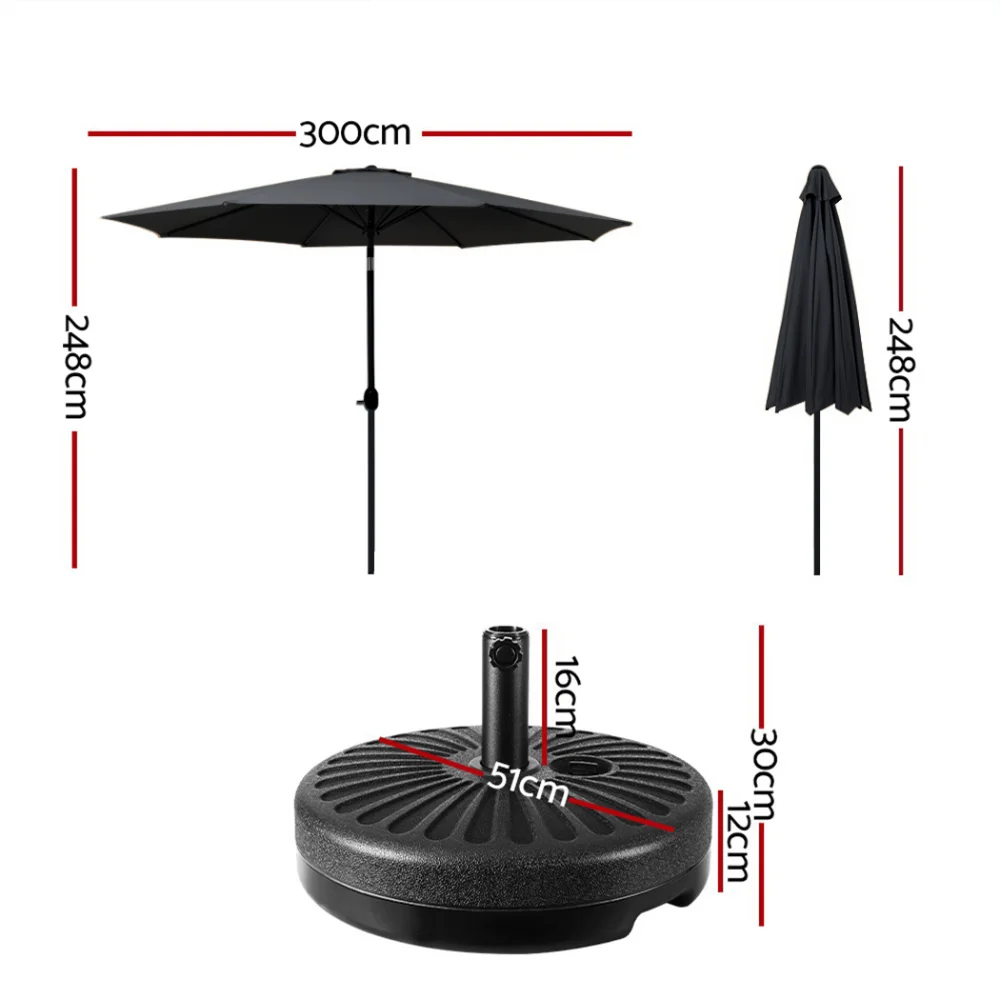 Instahut 3m Outdoor Umbrella with Base - Charcoal, UV50+ Protection, Water-Resistant Polyester, Oak Frame, Portable
