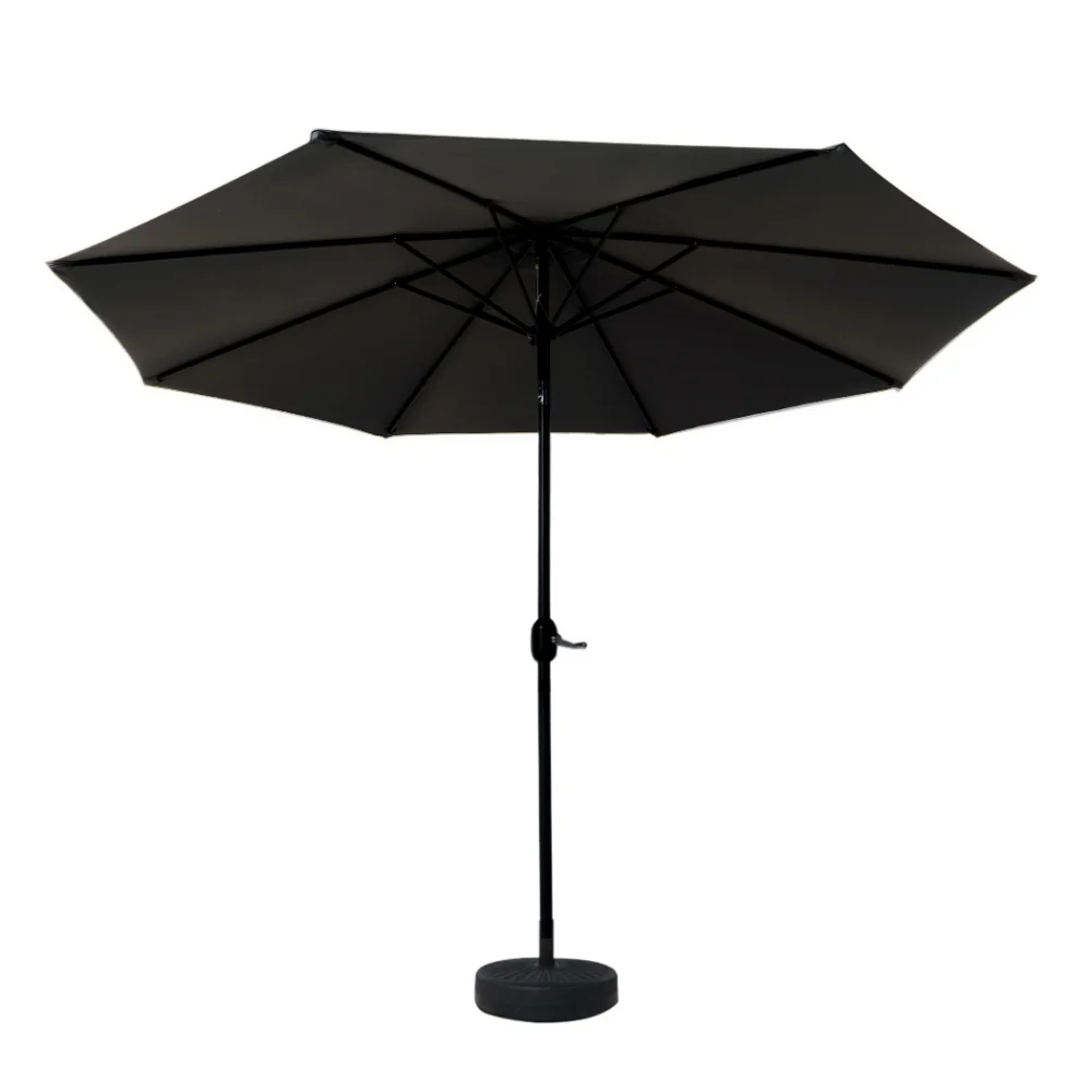 Instahut 3m Black Outdoor Umbrella with Tilt, UV50+ Polyester Canopy & Portable Base for Garden, Beach, Patio Use