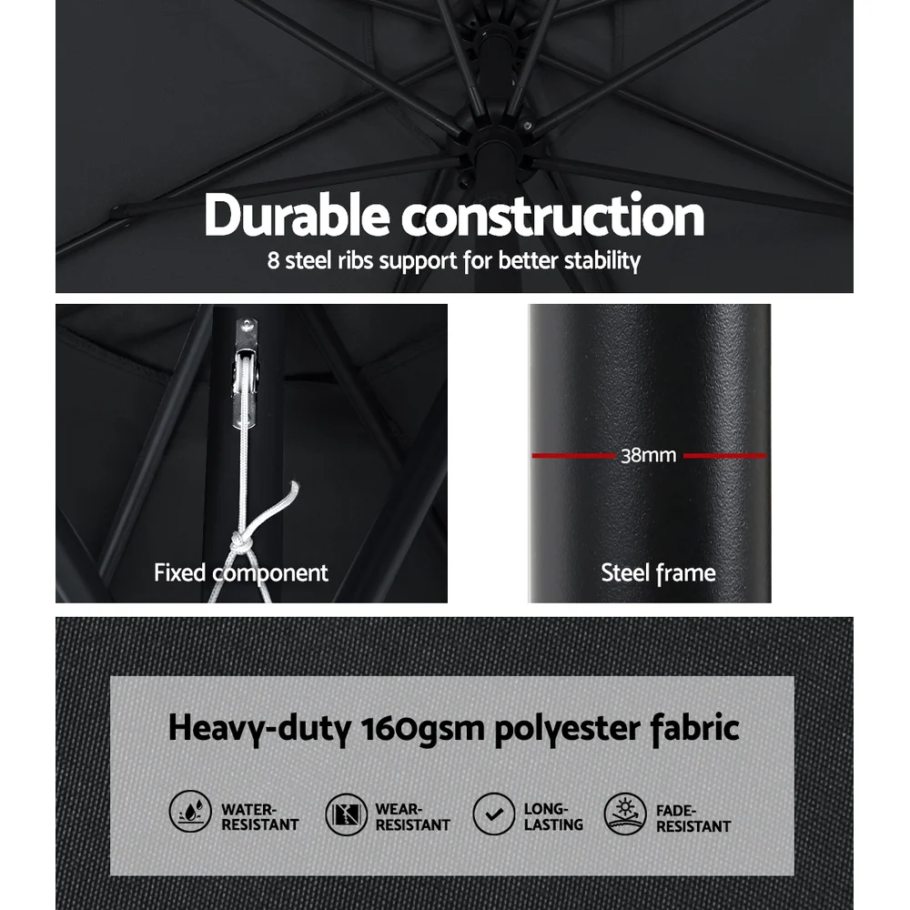 Instahut 3m Charcoal UV50+ Outdoor Umbrella with Tilt Function, Water-Resistant Polyester Canopy, Steel Frame