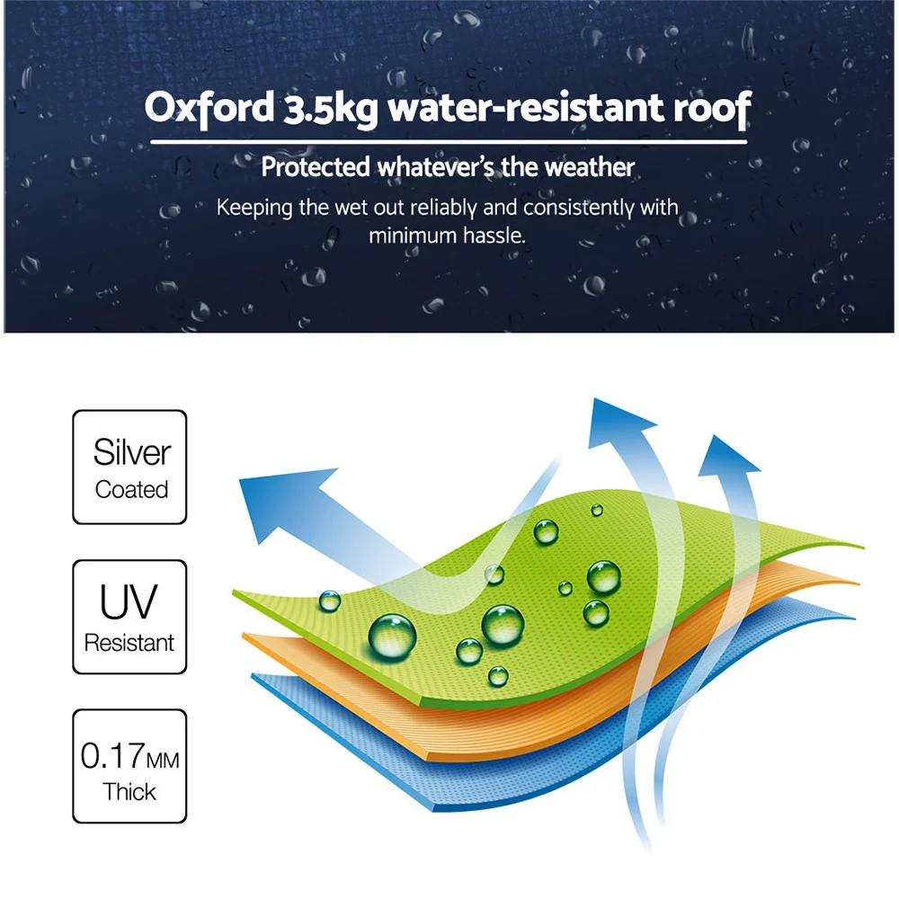 The Instahut Gazebo Pop Up Marquee 3x3 Folding Tent is your ultimate outdoor companion. Crafted from durable 500D Oxford fabric with a PU coating, it offers 300 x 300cm of UV and water-resistant coverage. The robust powder-coated steel frame ensures quick setup and durability. With three adjustable heights and bonus accessories like a fly mesh wall and sandbags, it's perfect for any event. Enjoy effortless assembly and transport with the included carry bag. Not for prolonged use in extreme weather.